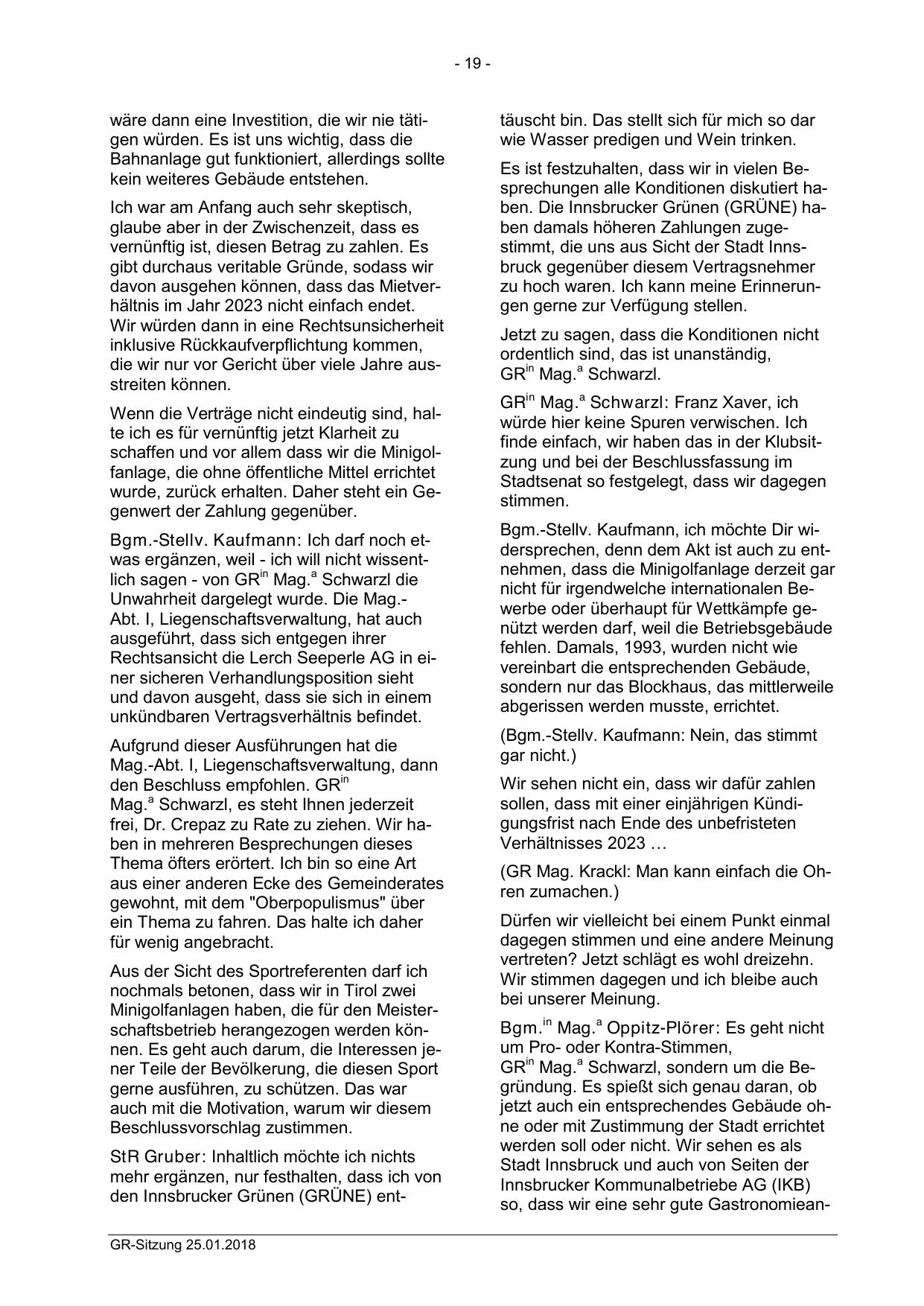 den Innsbrucker Grünen (GRÜNE) entGR-Sitzung 25.01.2018