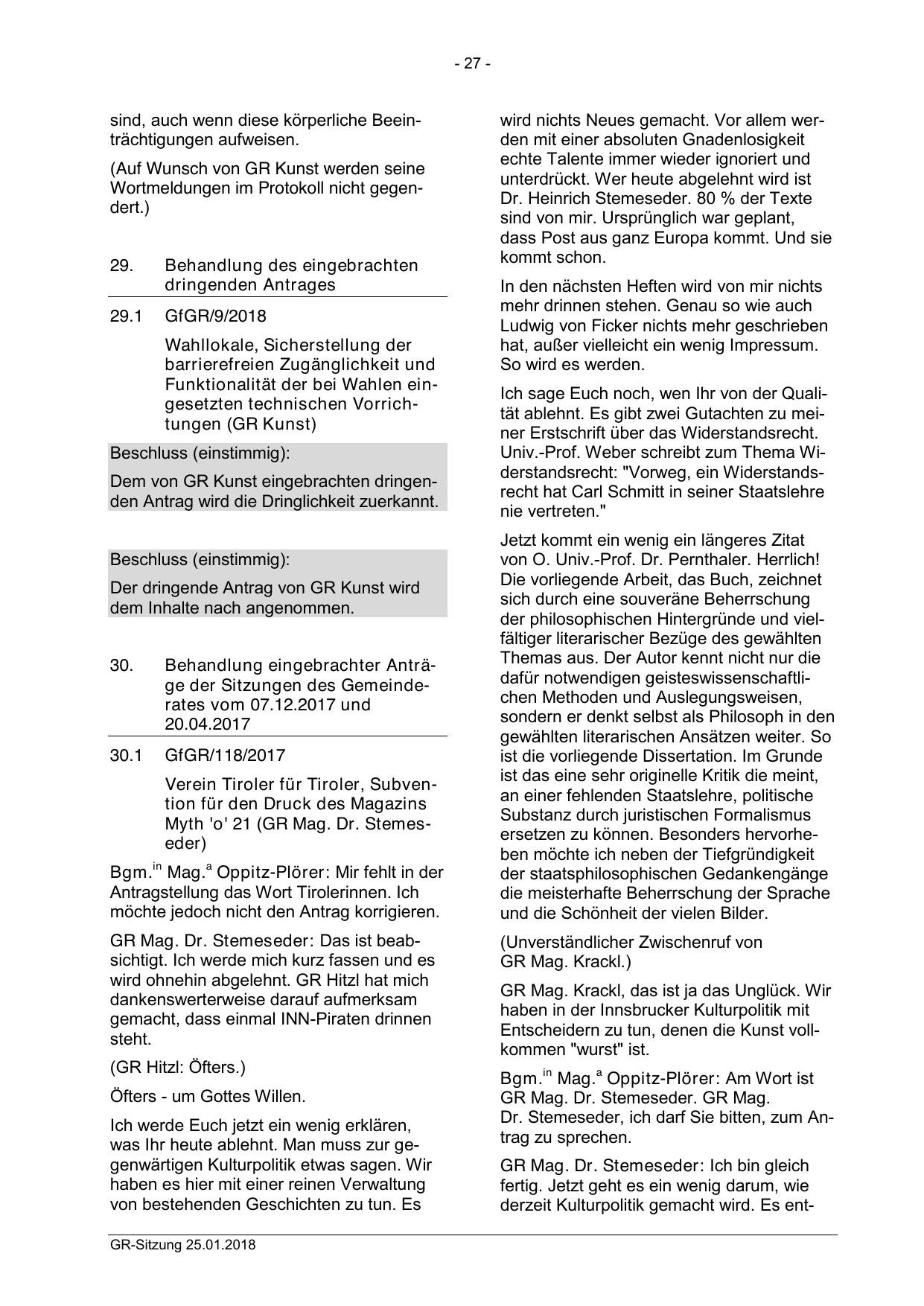 GR Mag. Dr. Stemeseder: Das ist beabsichtigt. Ich werde mich kurz fassen und es