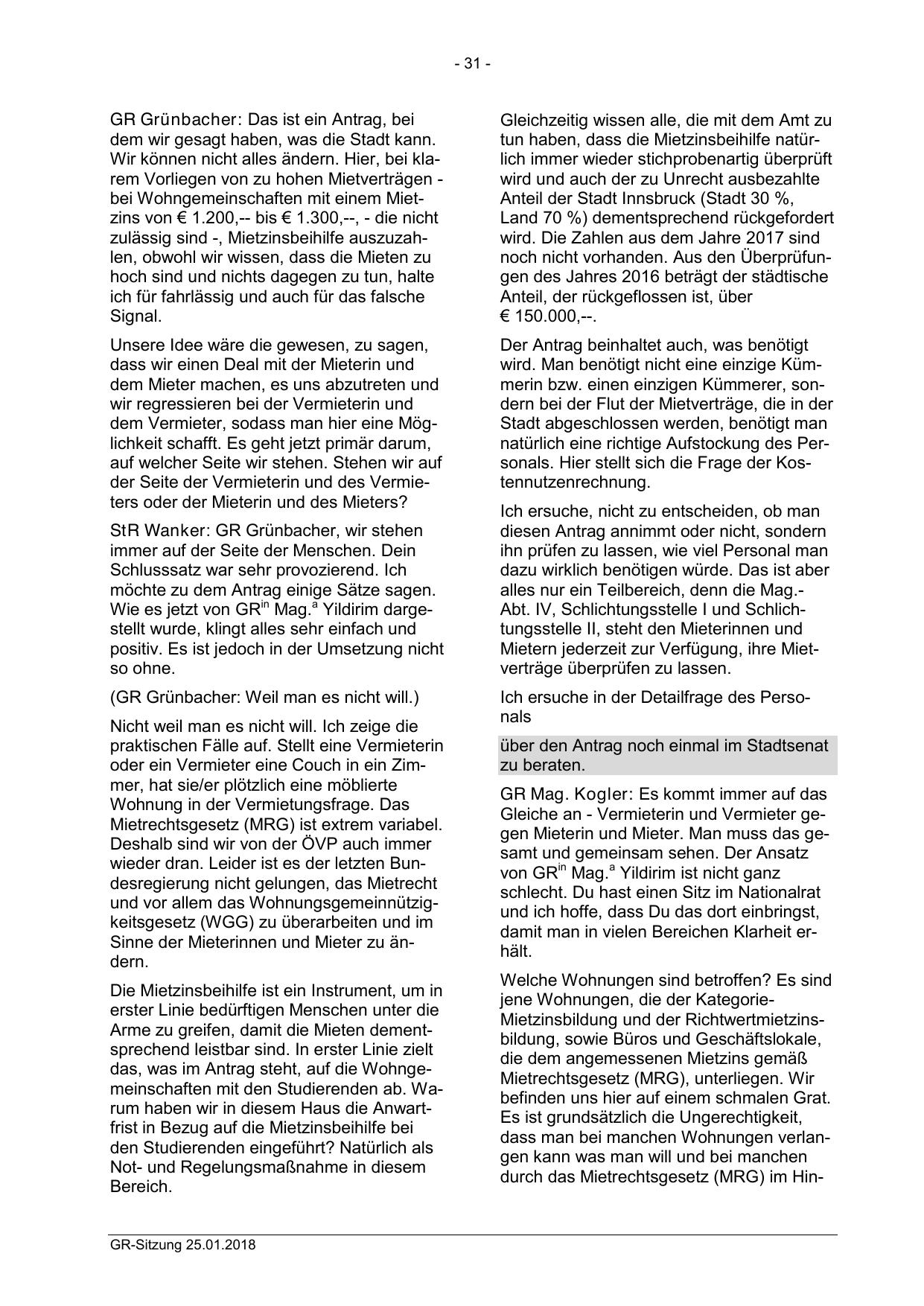 alles nur ein Teilbereich, denn die Mag.Abt. IV, Schlichtungsstelle I und Schlichtungsstelle II, steht den Mieterinnen und