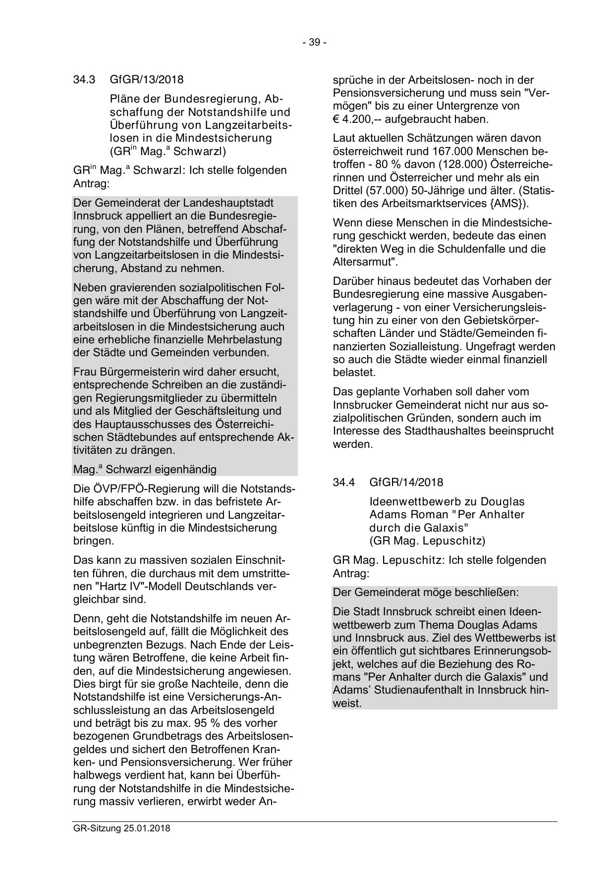 halbwegs verdient hat, kann bei Überführung der Notstandshilfe in die Mindestsicherung massiv verlieren, erwirbt weder AnGR-Sitzung 25.01.2018