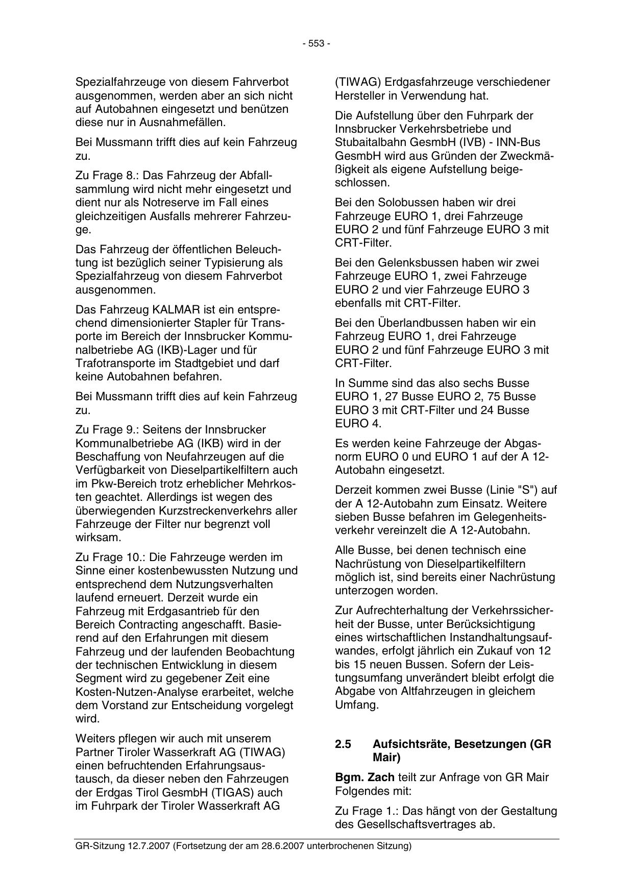 GR-Sitzung 12.7.2007 (Fortsetzung der am 28.6.2007 unterbrochenen Sitzung)
