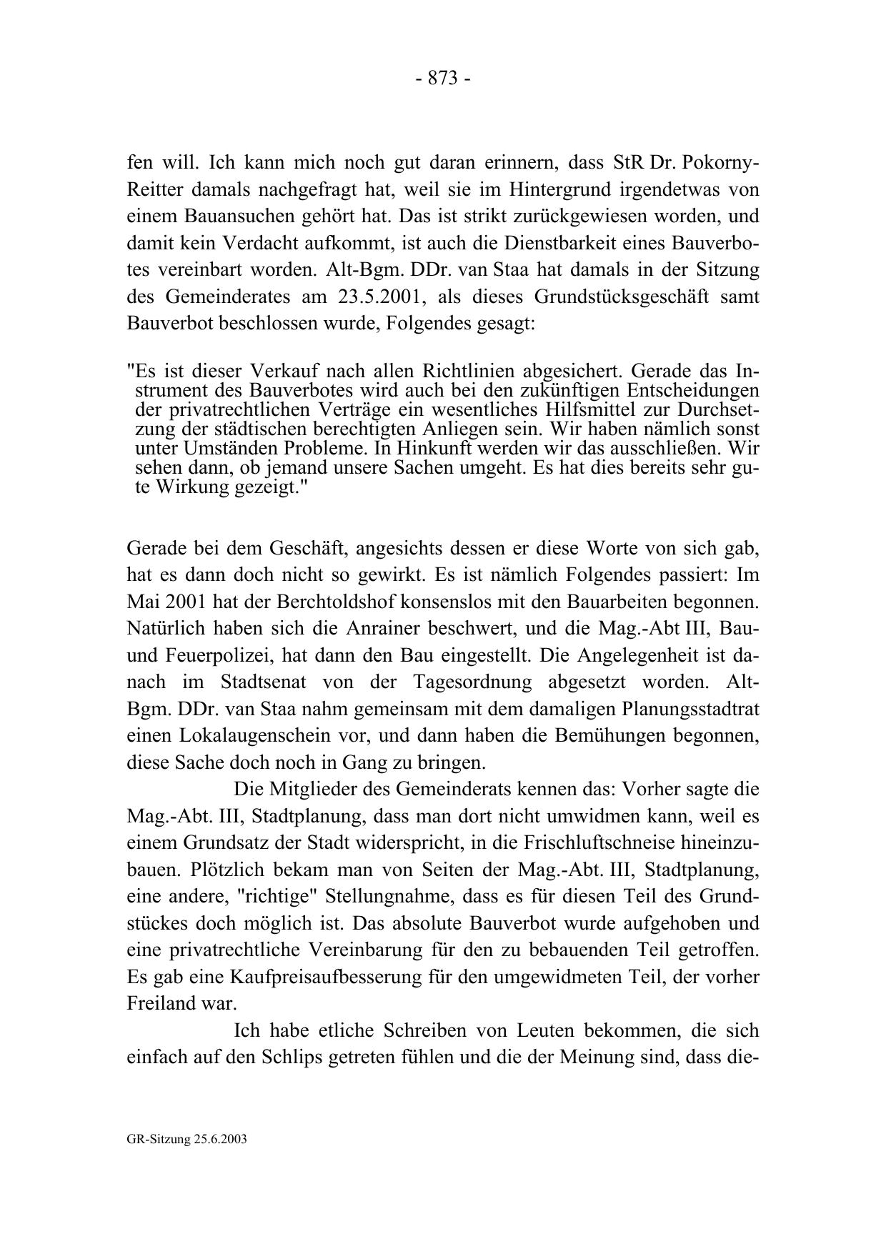 fen will. Ich kann mich noch gut daran erinnern, dass StR Dr. PokornyReitter damals nachgefragt hat, weil sie im Hintergrund irgendetwas von