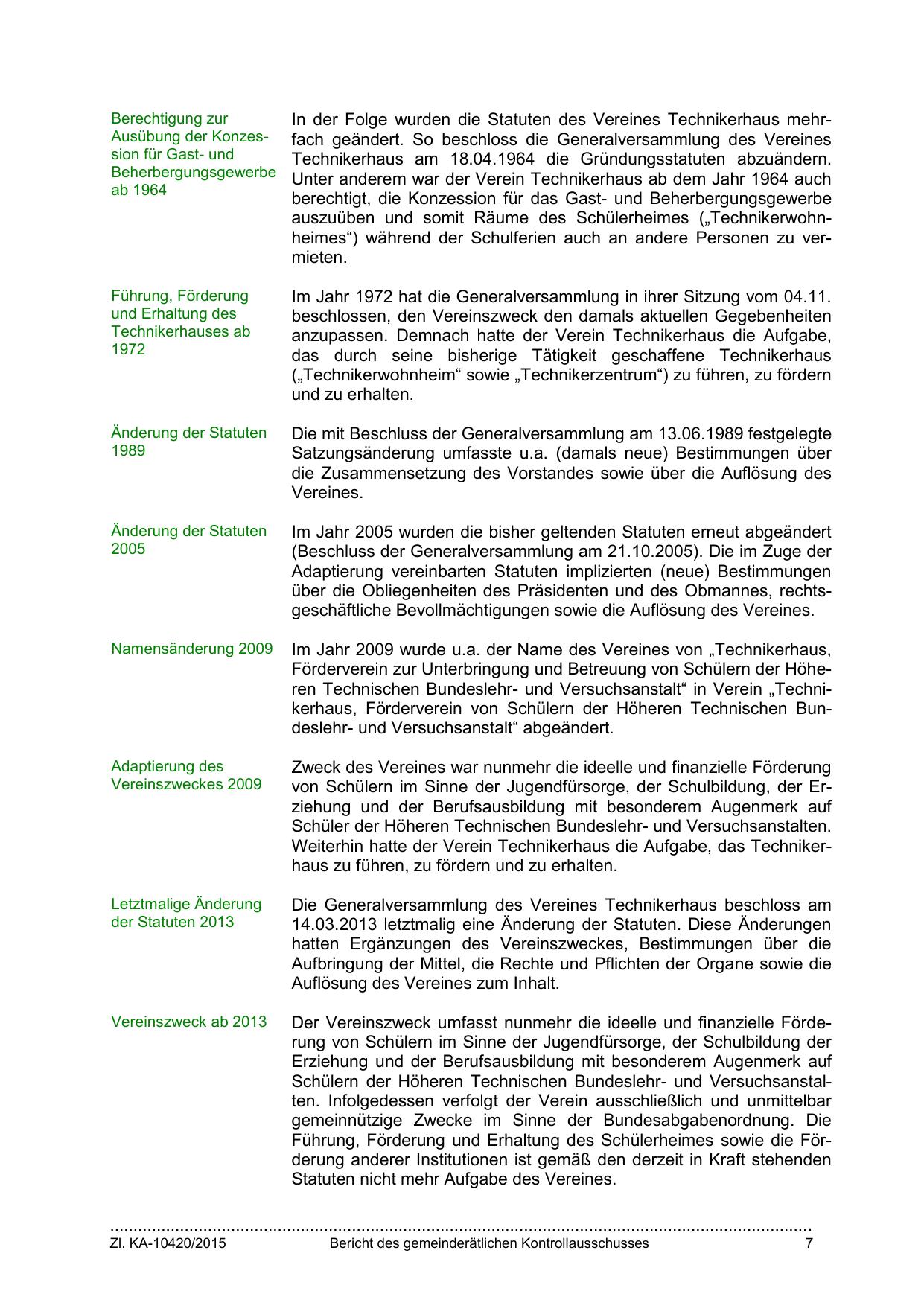 14.03.2013 letztmalig eine Änderung der Statuten. Diese Änderungen