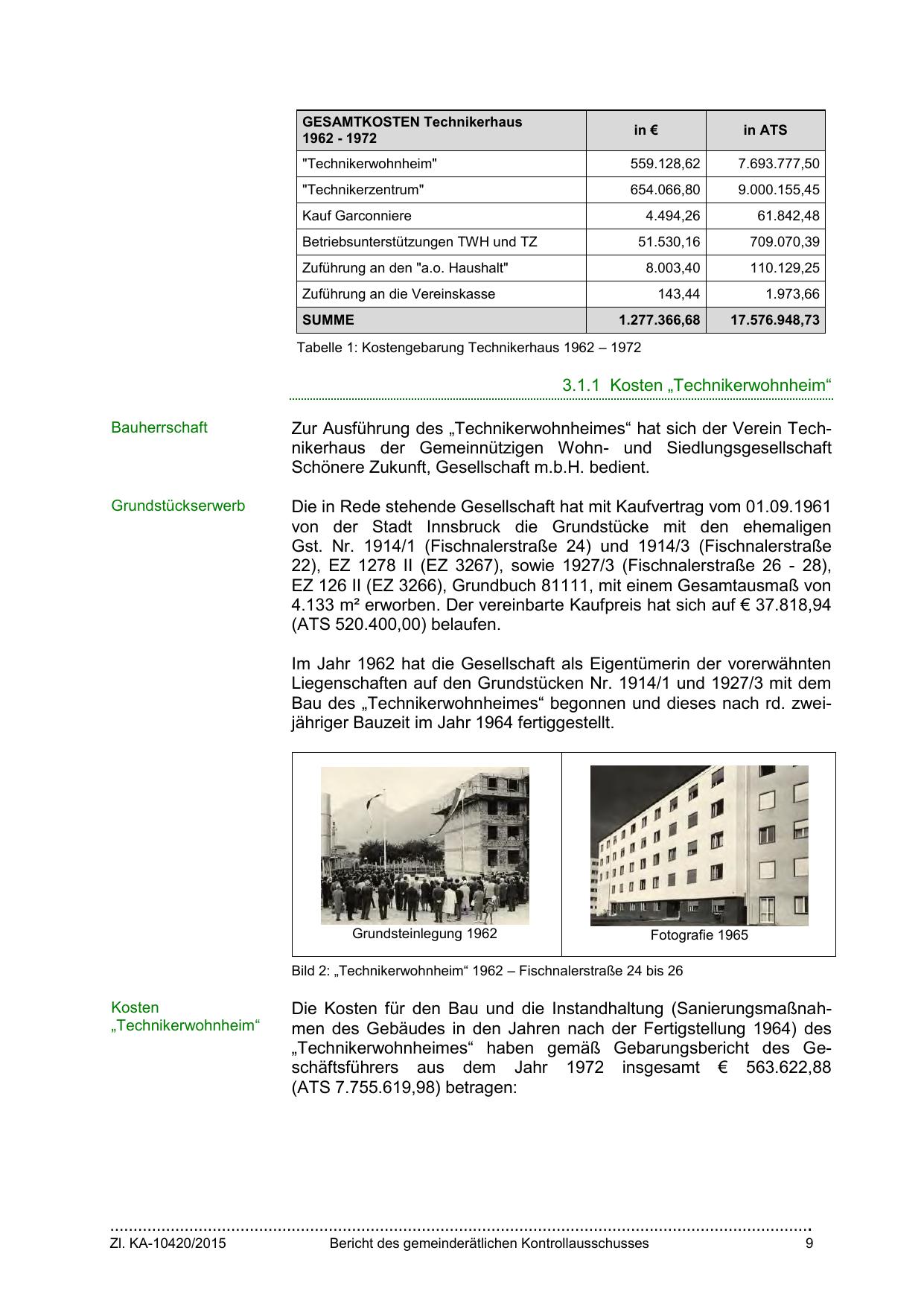 „Technikerwohnheimes“ haben gemäß Gebarungsbericht des Geschäftsführers aus dem Jahr 1972 insgesamt € 563.622,88