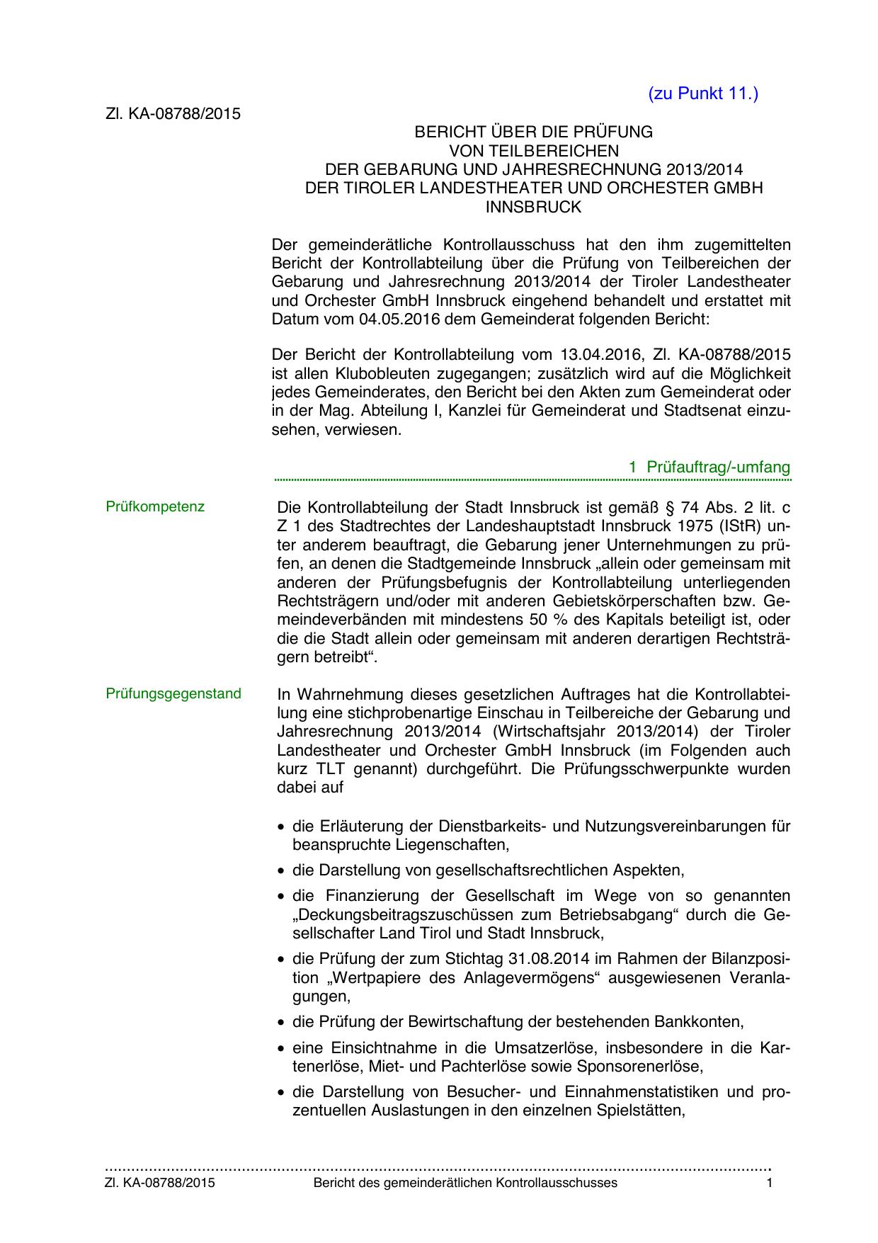 und Orchester GmbH Innsbruck eingehend behandelt und erstattet mit