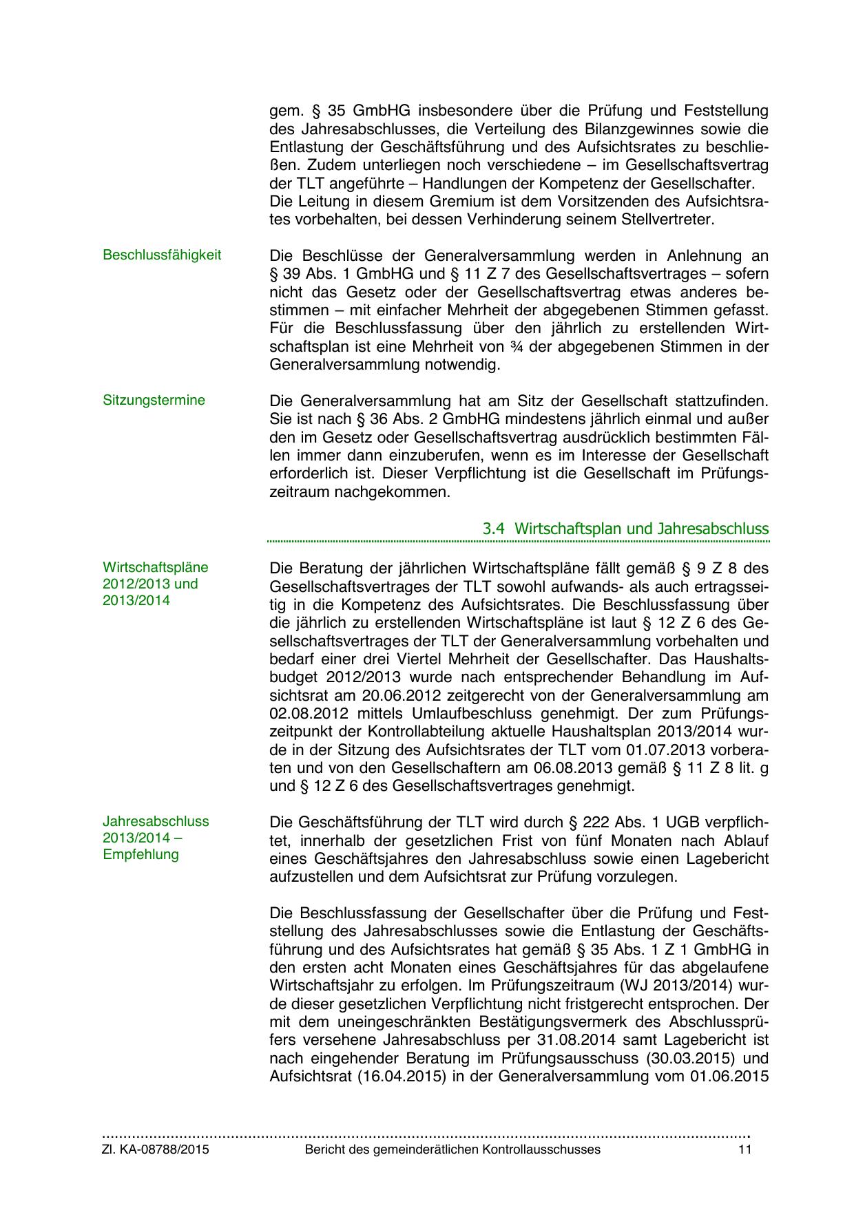 02.08.2012 mittels Umlaufbeschluss genehmigt. Der zum Prüfungszeitpunkt der Kontrollabteilung aktuelle Haushaltsplan 2013/2014 wurde in der Sitzung des Aufsichtsrates der TLT vom 01.07.2013 vorberaten und von den Gesellschaftern am 06.08.2013 gemäß § 11 Z 8 lit. g