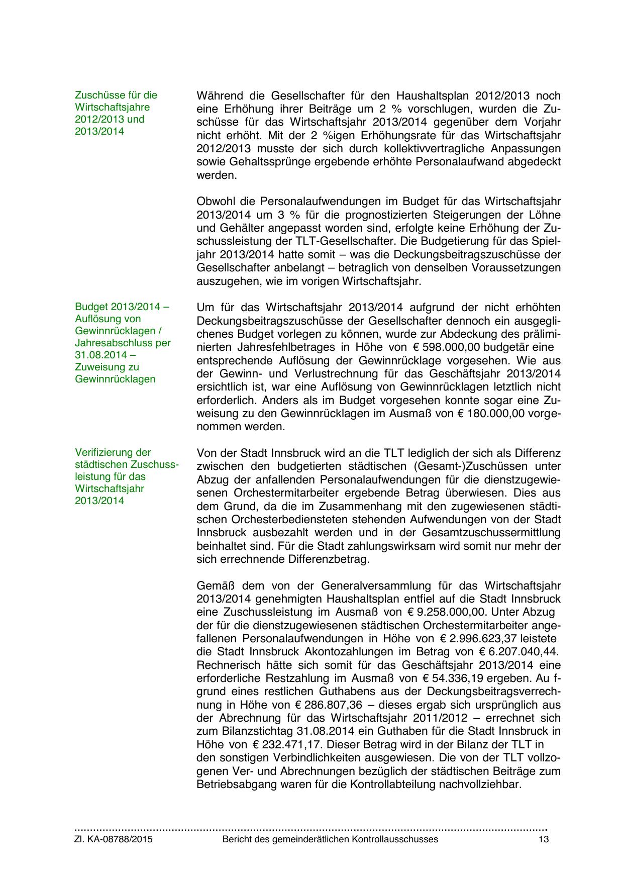 und Gehälter angepasst worden sind, erfolgte keine Erhöhung der Zuschussleistung der TLT-Gesellschafter. Die Budgetierung für das Spieljahr 2013/2014 hatte somit – was die Deckungsbeitragszuschüsse der