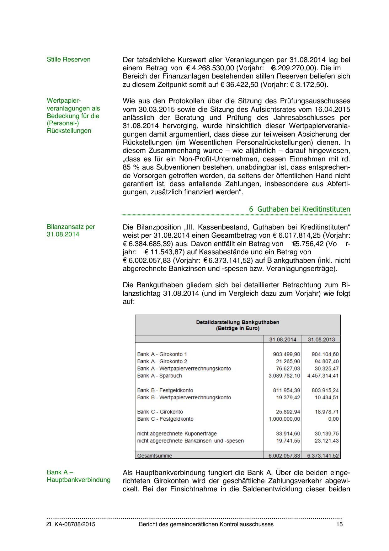 31.08.2014 hervorging, wurde hinsichtlich dieser Wertpapierveranlagungen damit argumentiert, dass diese zur teilweisen Absicherung der