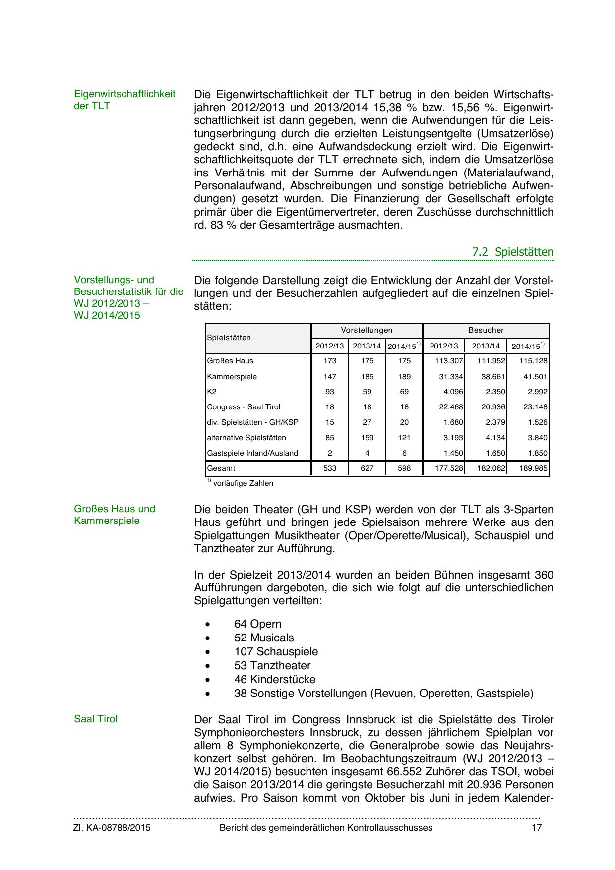 aufwies. Pro Saison kommt von Oktober bis Juni in jedem KalenderBericht des gemeinderätlichen Kontrollausschusses
