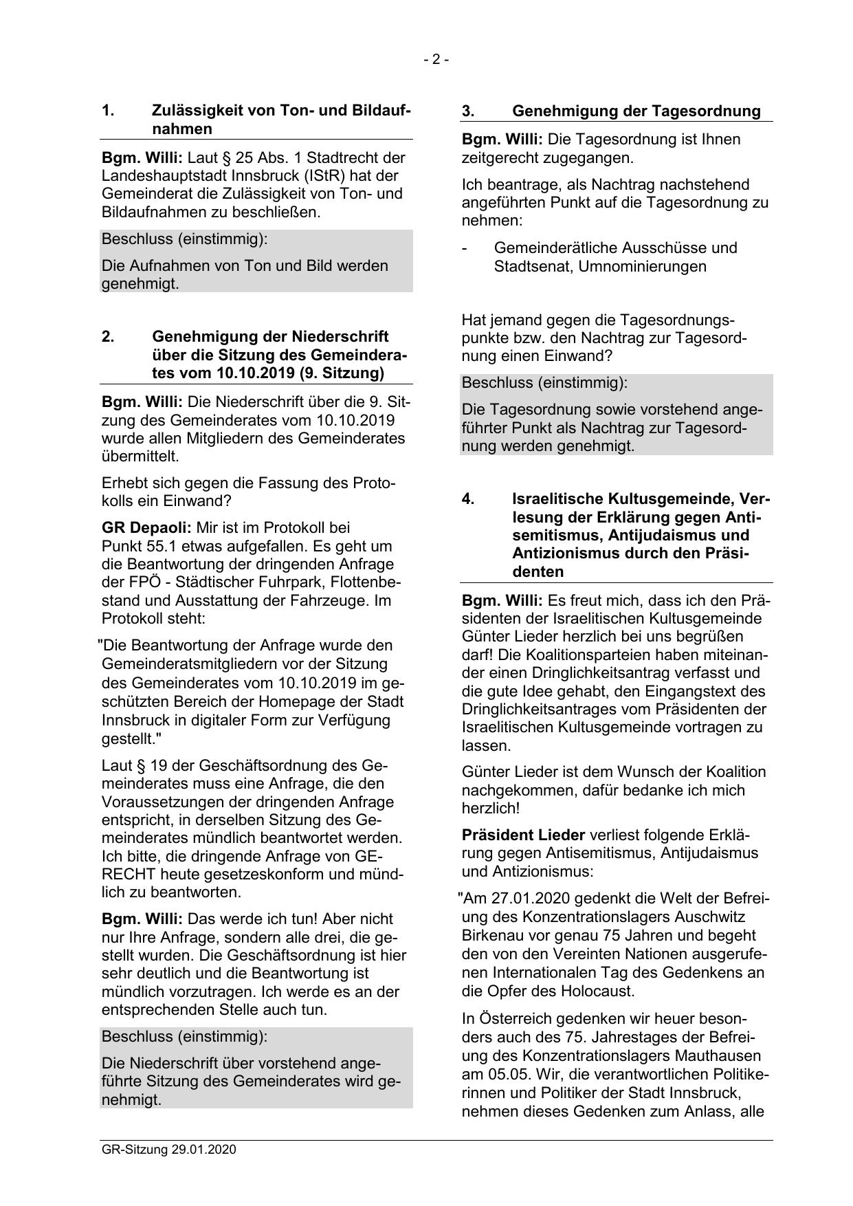 Bgm. Willi: Die Tagesordnung ist Ihnen