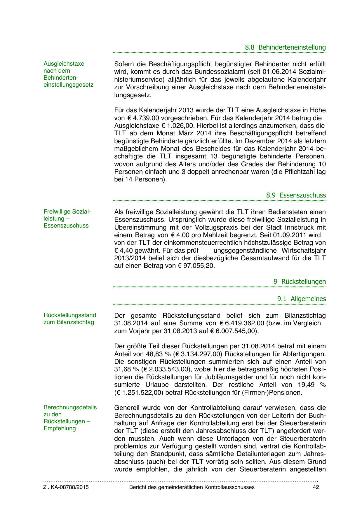 problemlos zur Verfügung gestellt worden sind, vertrat die Kontrollabteilung den Standpunkt, dass sämtliche Detailunterlagen zum Jahresabschluss (auch) bei der TLT vorrätig sein sollten. Aus diesem Grund