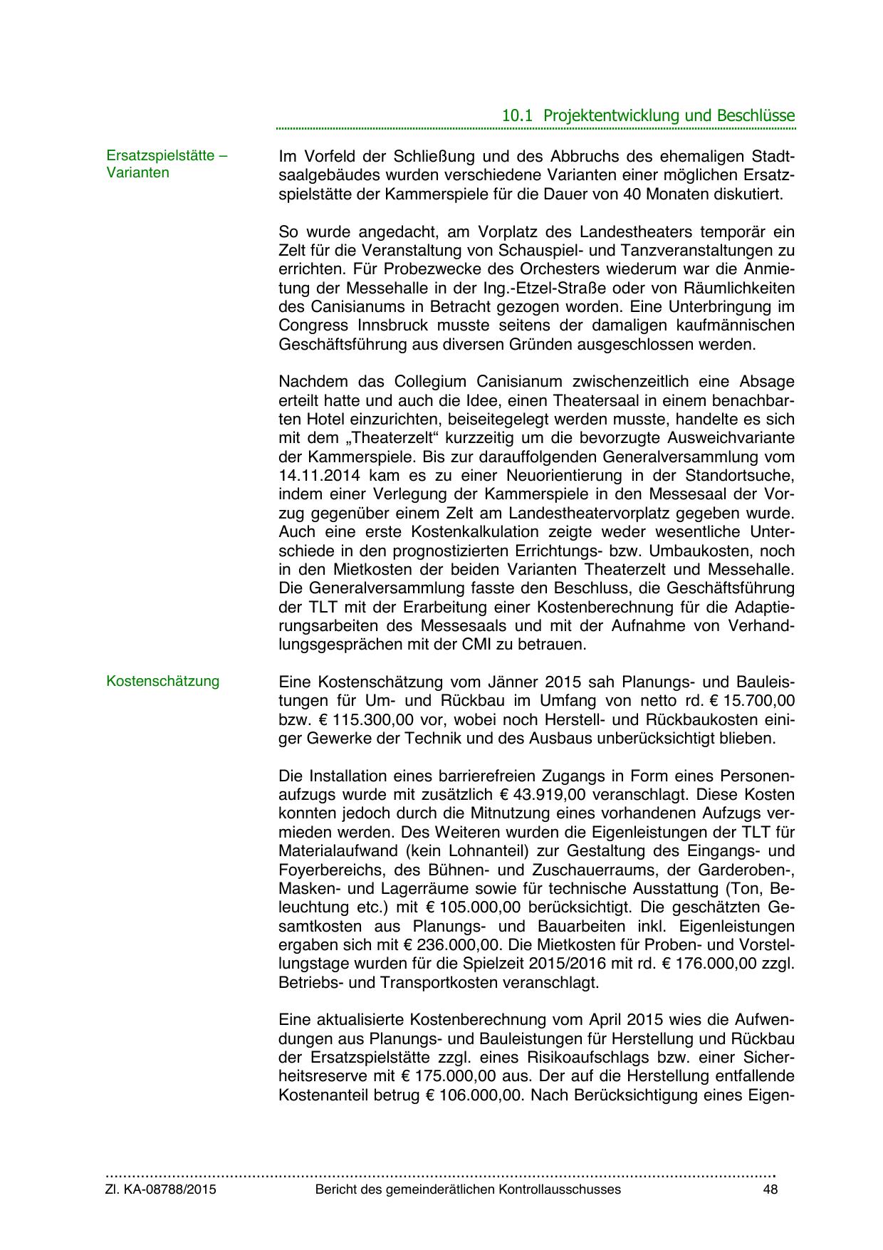 der TLT mit der Erarbeitung einer Kostenberechnung für die Adaptierungsarbeiten des Messesaals und mit der Aufnahme von Verhandlungsgesprächen mit der CMI zu betrauen.