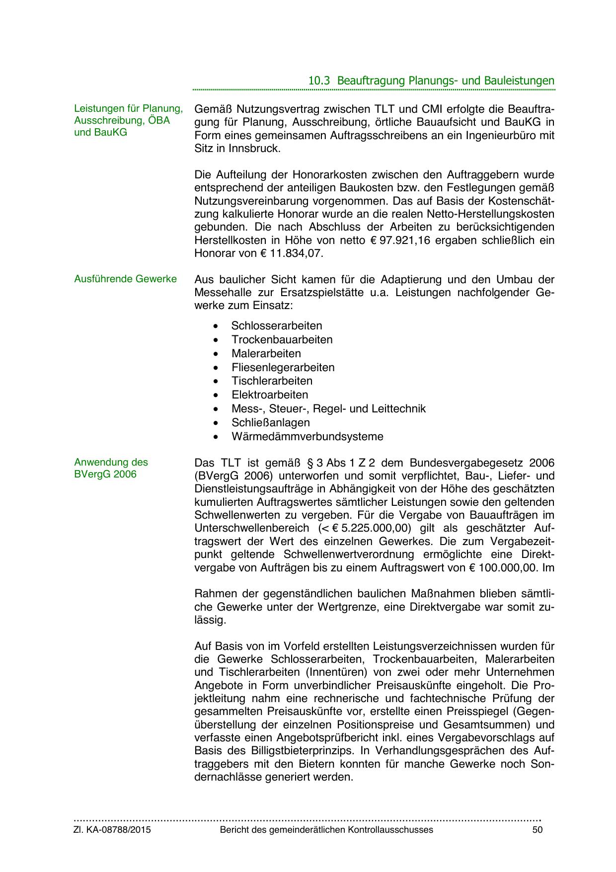 Basis des Billigstbieterprinzips. In Verhandlungsgesprächen des Auftraggebers mit den Bietern konnten für manche Gewerke noch Sondernachlässe generiert werden.