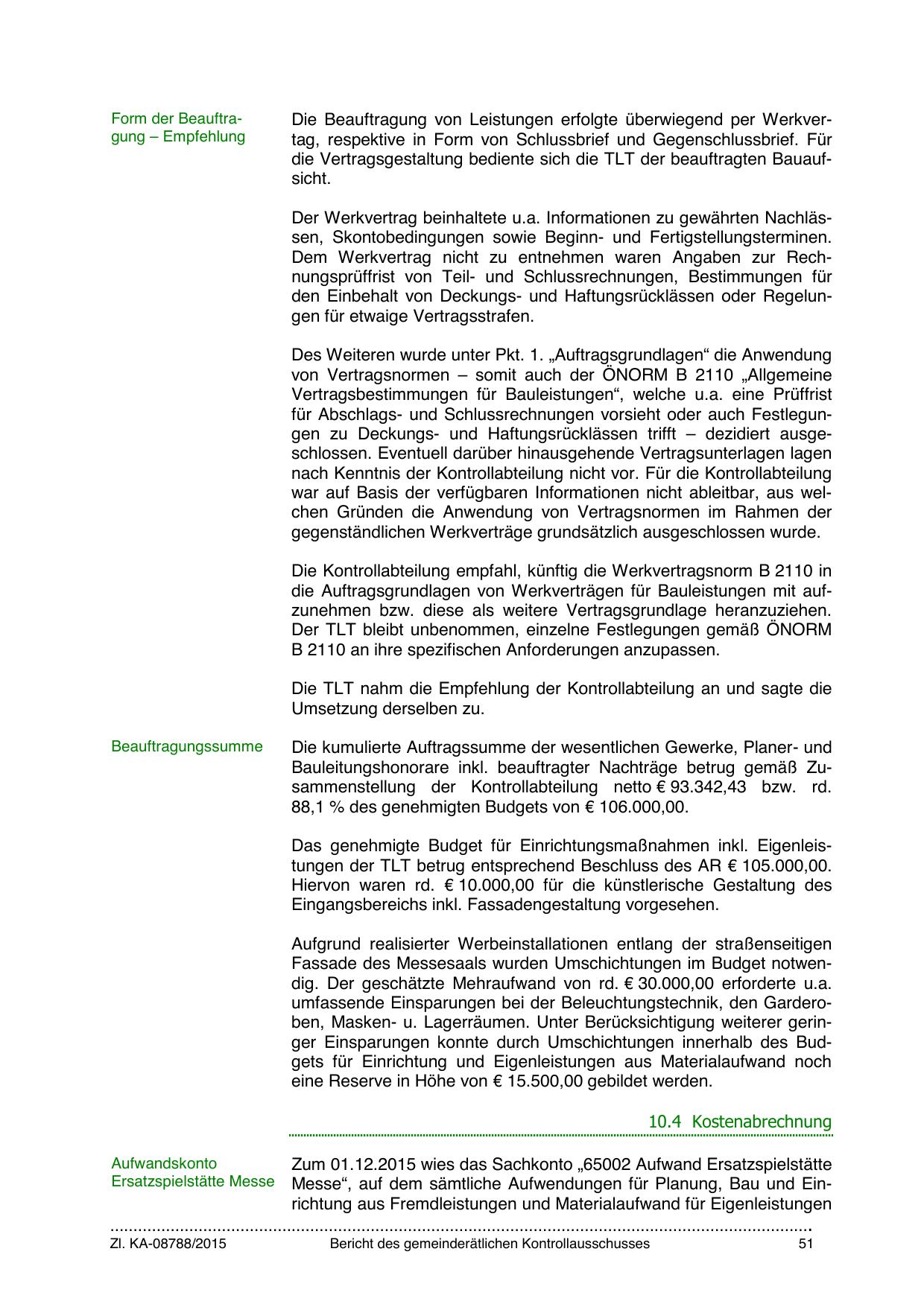 Die Kontrollabteilung empfahl, künftig die Werkvertragsnorm B 2110 in