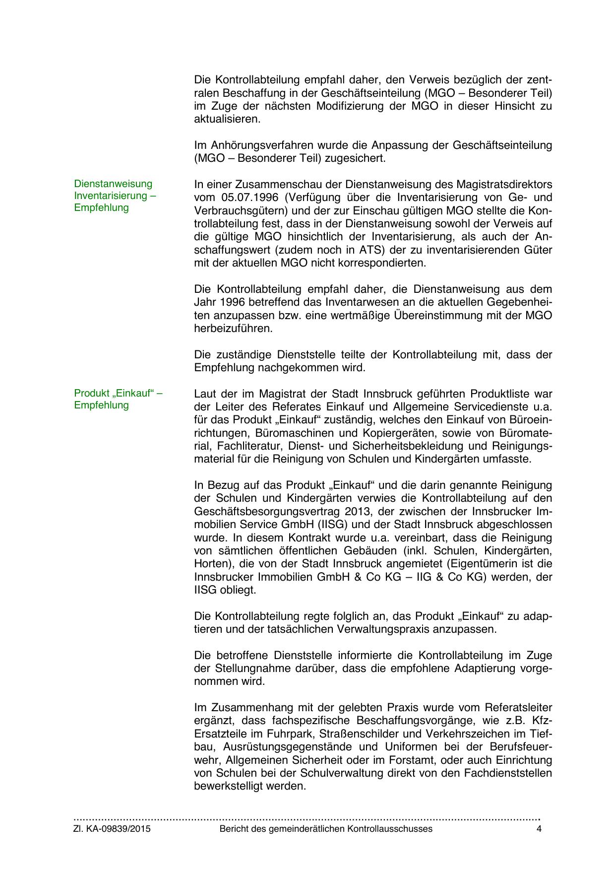 Verbrauchsgütern) und der zur Einschau gültigen MGO stellte die Kontrollabteilung fest, dass in der Dienstanweisung sowohl der Verweis auf