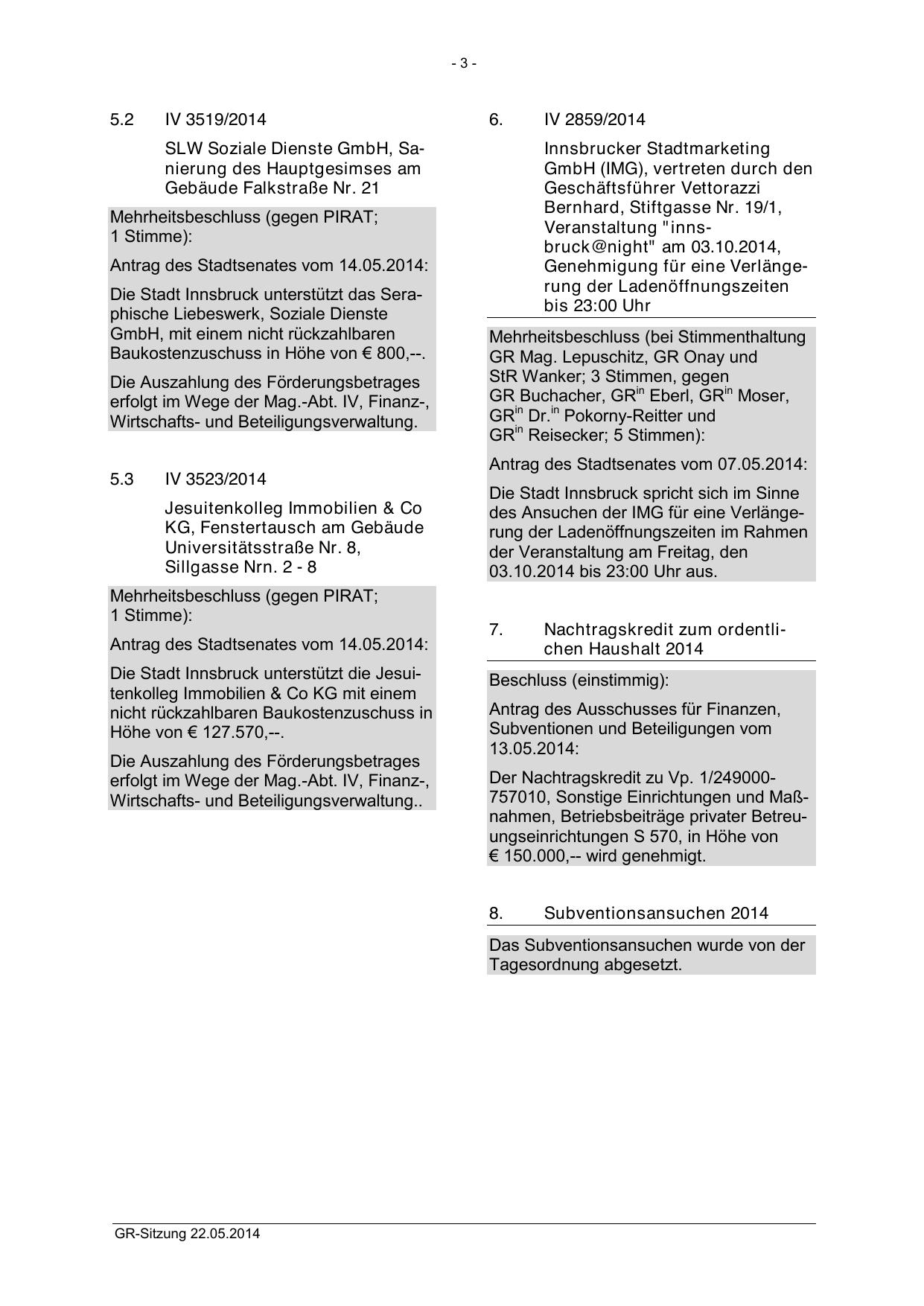 Antrag des Stadtsenates vom 07.05.2014:
