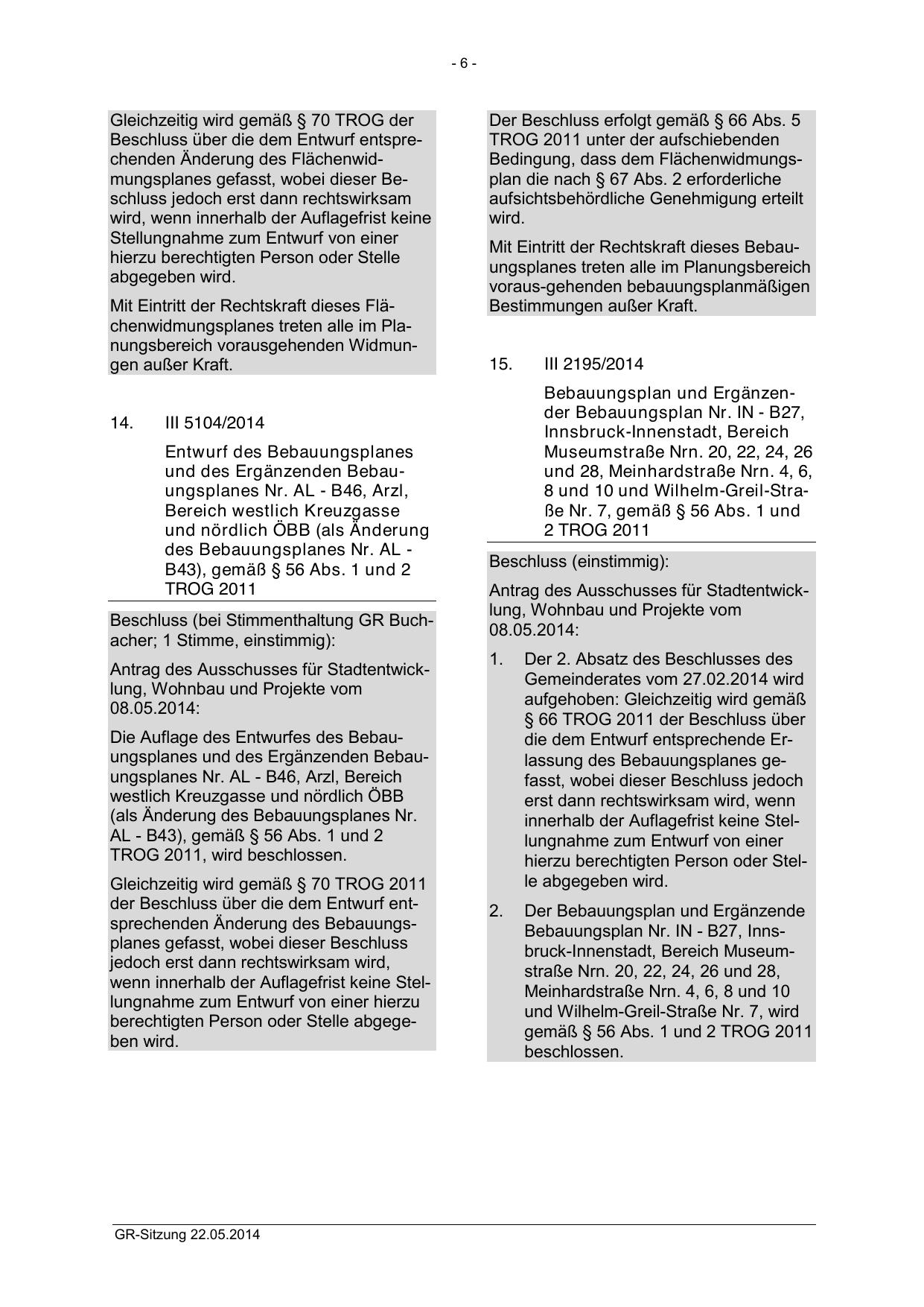 § 66 TROG 2011 der Beschluss über