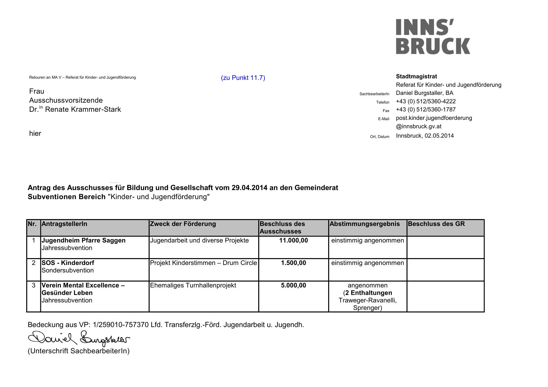 Bedeckung aus VP: 1/259010-757370 Lfd. Transferzlg.-Förd. Jugendarbeit u. Jugendh.