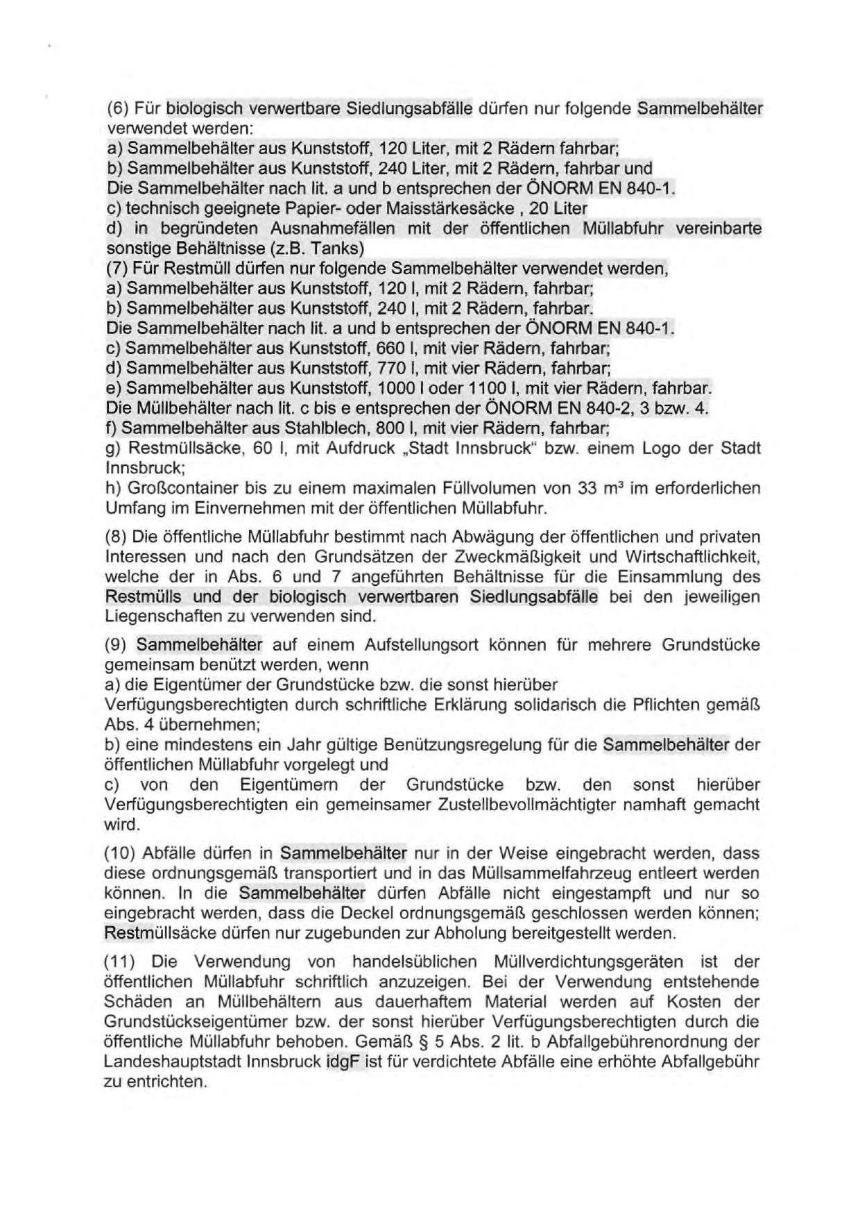 Landeshauptstadt Innsbruck idgF ist für verdichtete Abfälle eine erhöhte Abfallgebühr