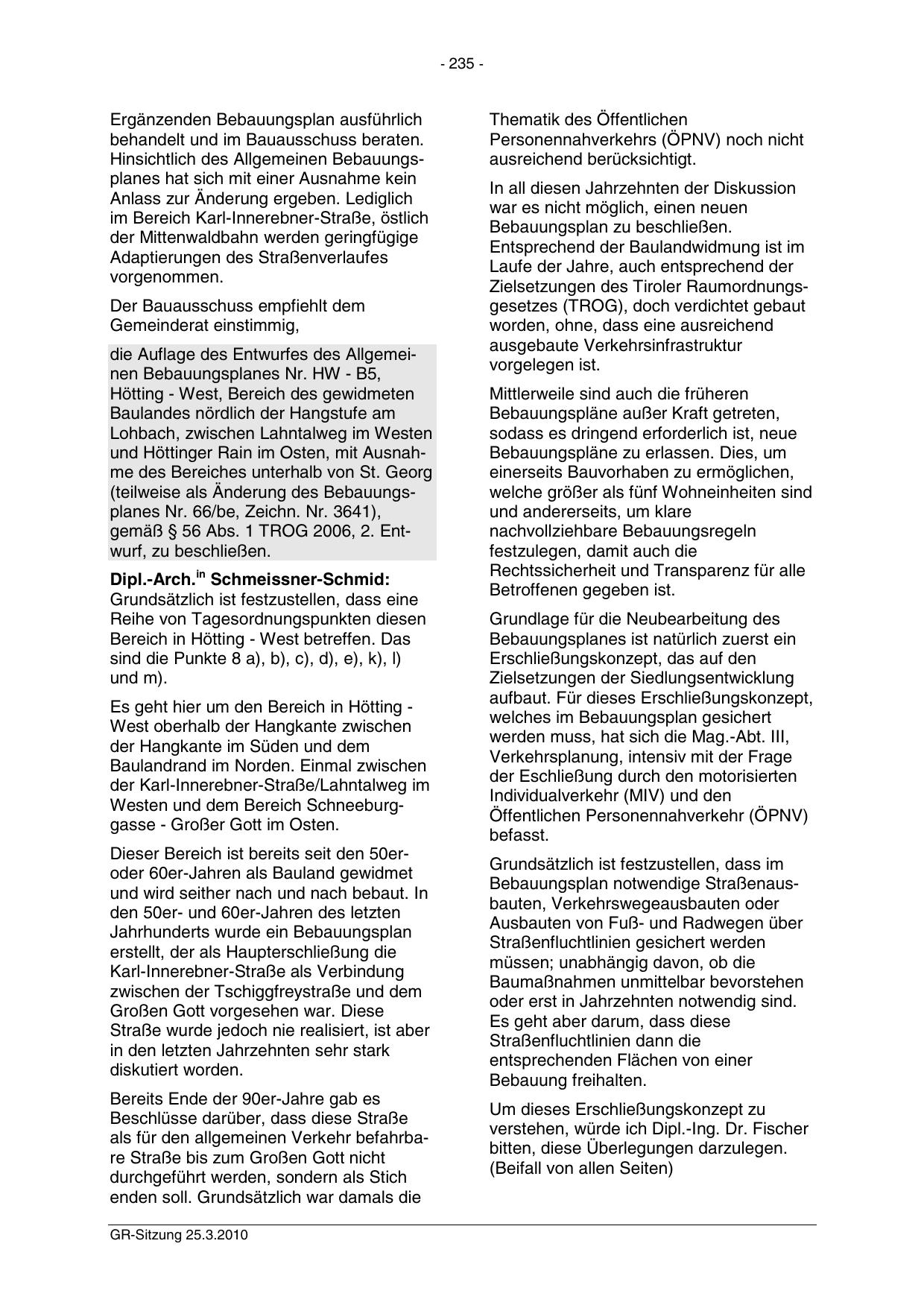 Hinsichtlich des Allgemeinen Bebauungsplanes hat sich mit einer Ausnahme kein
