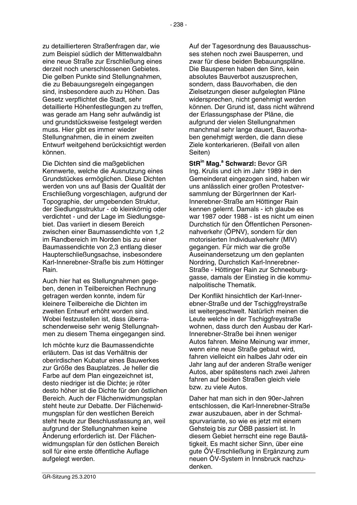 uns anlässlich einer großen Protestversammlung der BürgerInnen der KarlInnerebner-Straße am Höttinger Rain