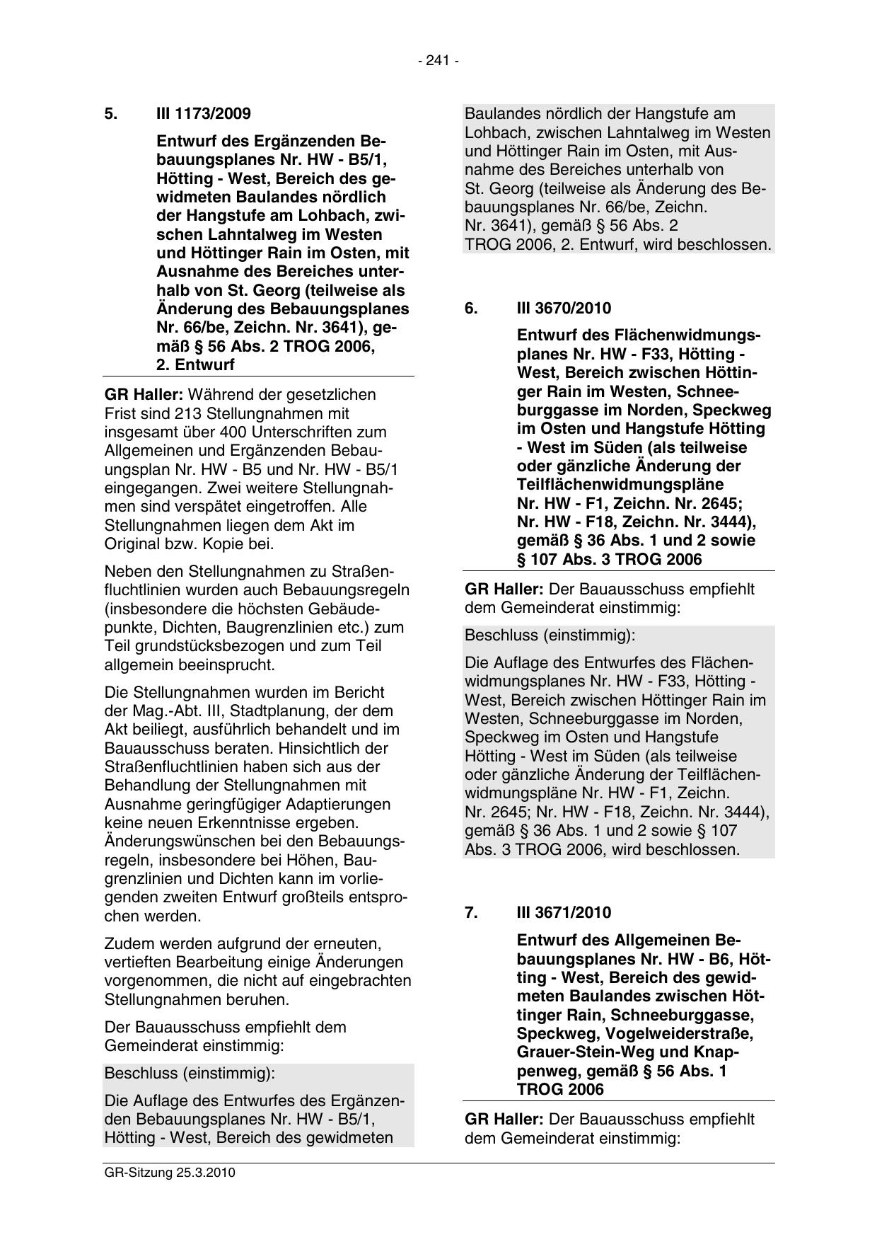 Entwurf des Allgemeinen Bebauungsplanes Nr. HW - B6, Hötting - West, Bereich des gewidmeten Baulandes zwischen Höttinger Rain, Schneeburggasse,