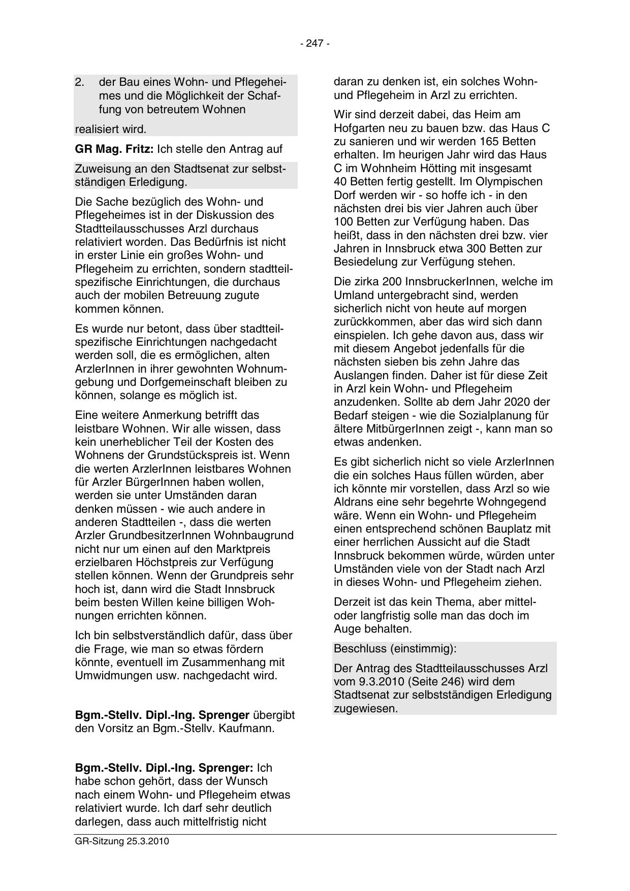 daran zu denken ist, ein solches Wohnund Pflegeheim in Arzl zu errichten.
