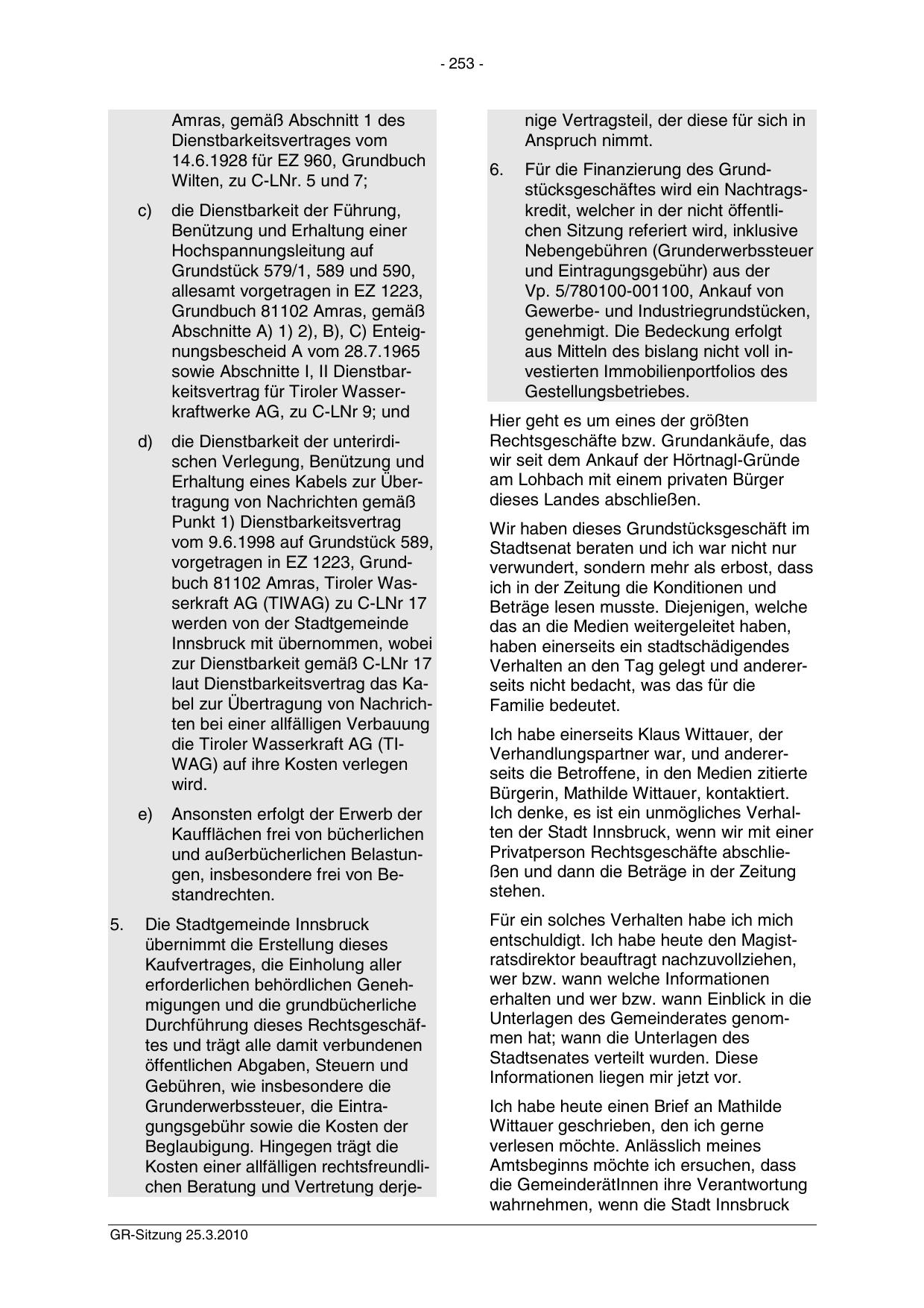 Ich denke, es ist ein unmögliches Verhalten der Stadt Innsbruck, wenn wir mit einer