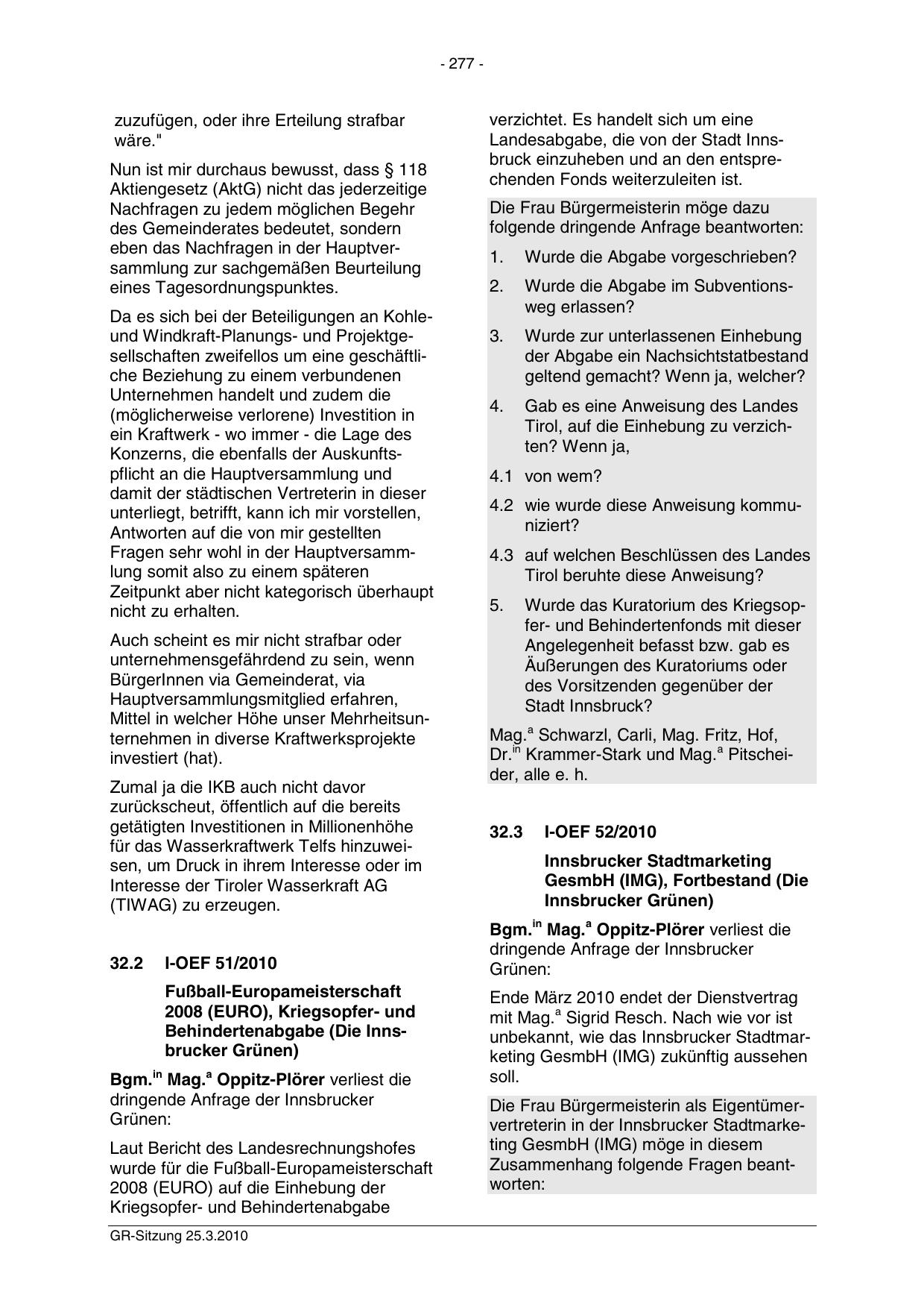 Die Frau Bürgermeisterin als Eigentümervertreterin in der Innsbrucker Stadtmarketing GesmbH (IMG) möge in diesem