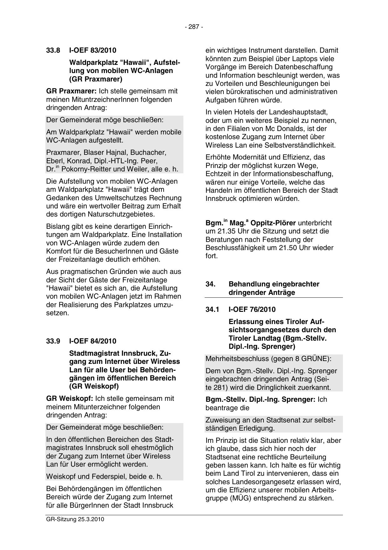 Mehrheitsbeschluss (gegen 8 GRÜNE):