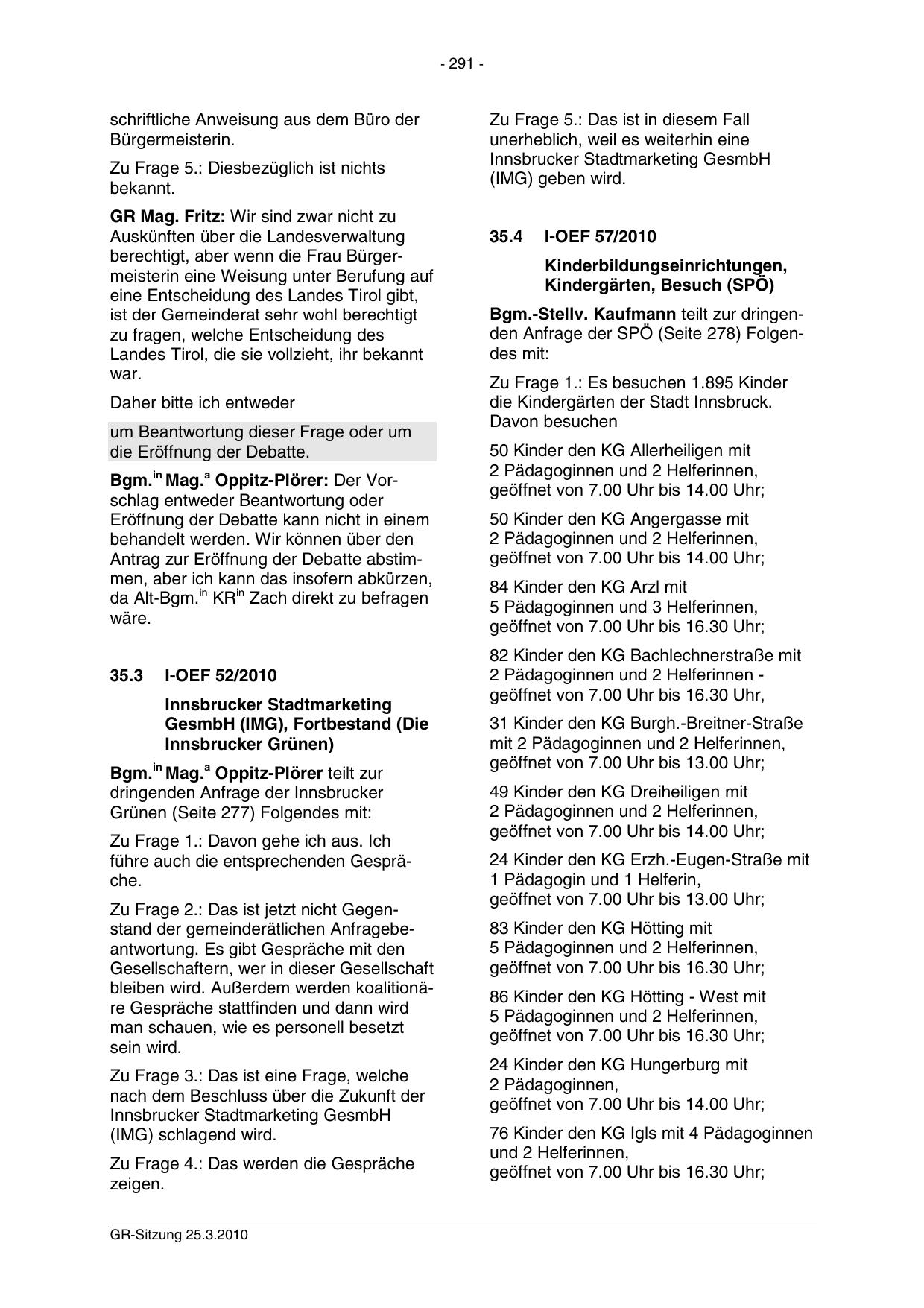 Bgm.-Stellv. Kaufmann teilt zur dringenden Anfrage der SPÖ (Seite 278) Folgendes mit:
