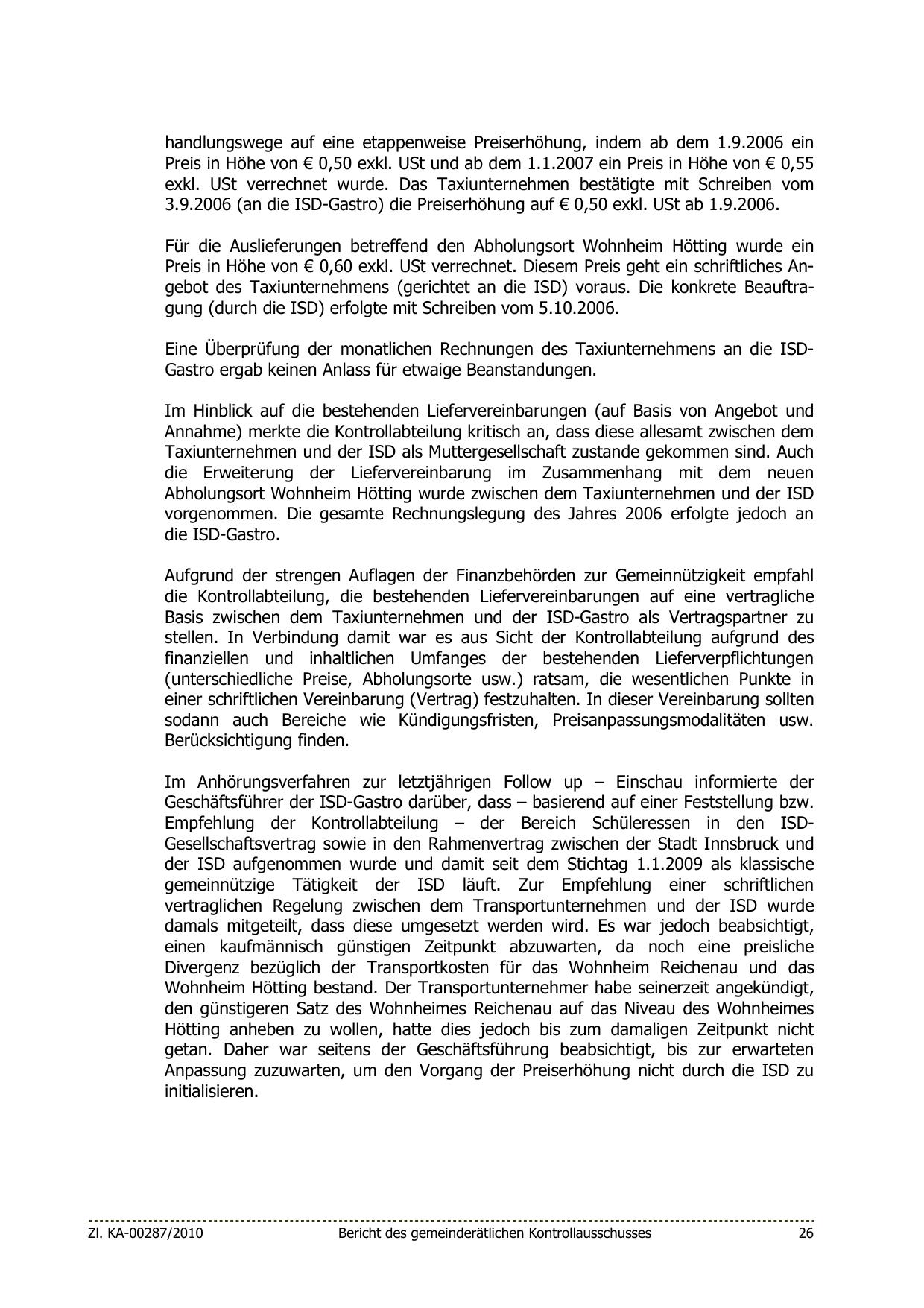 Empfehlung der Kontrollabteilung – der Bereich Schüleressen in den ISDGesellschaftsvertrag sowie in den Rahmenvertrag zwischen der Stadt Innsbruck und