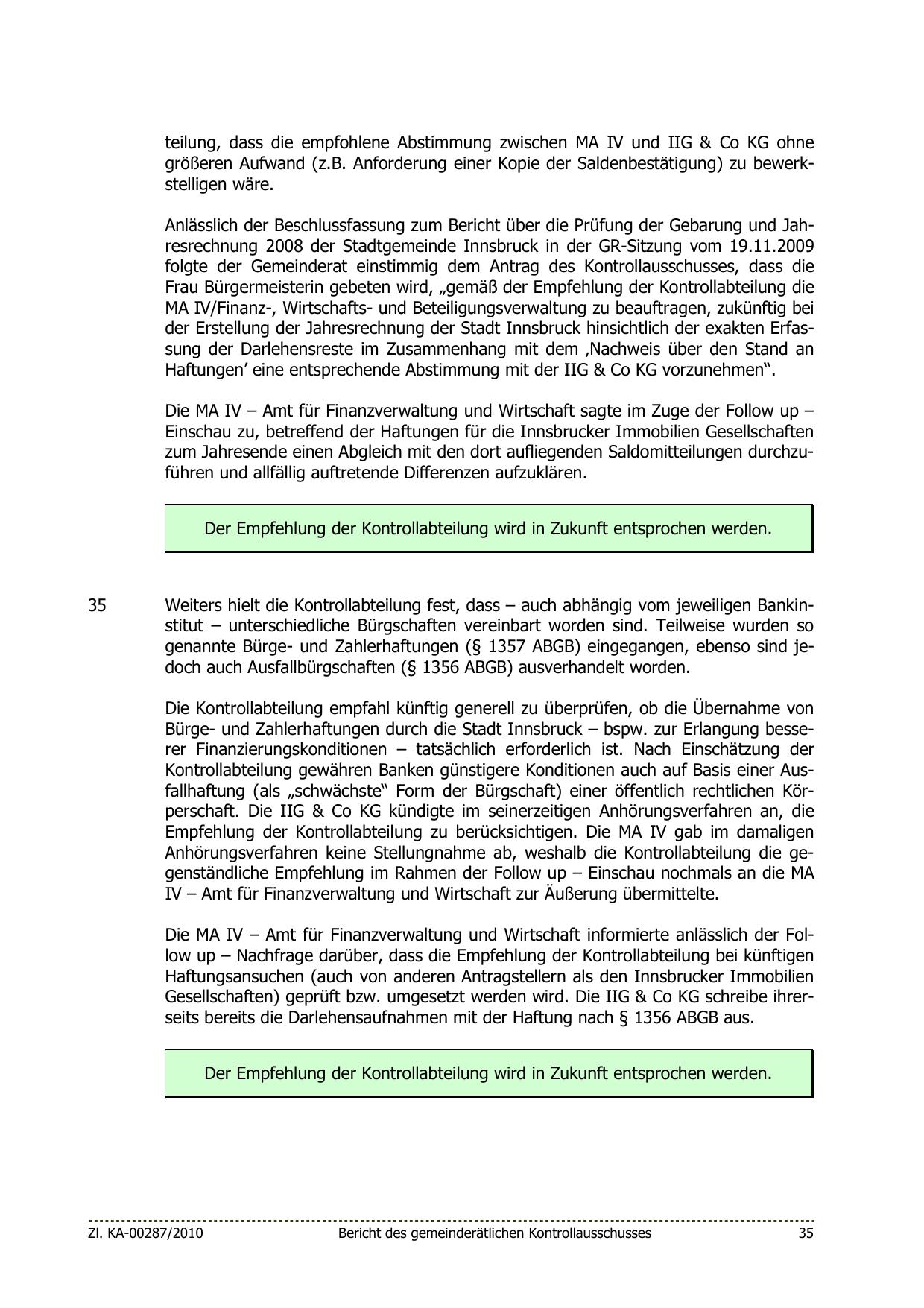 Gesellschaften) geprüft bzw. umgesetzt werden wird. Die IIG & Co KG schreibe ihrerseits bereits die Darlehensaufnahmen mit der Haftung nach § 1356 ABGB aus.