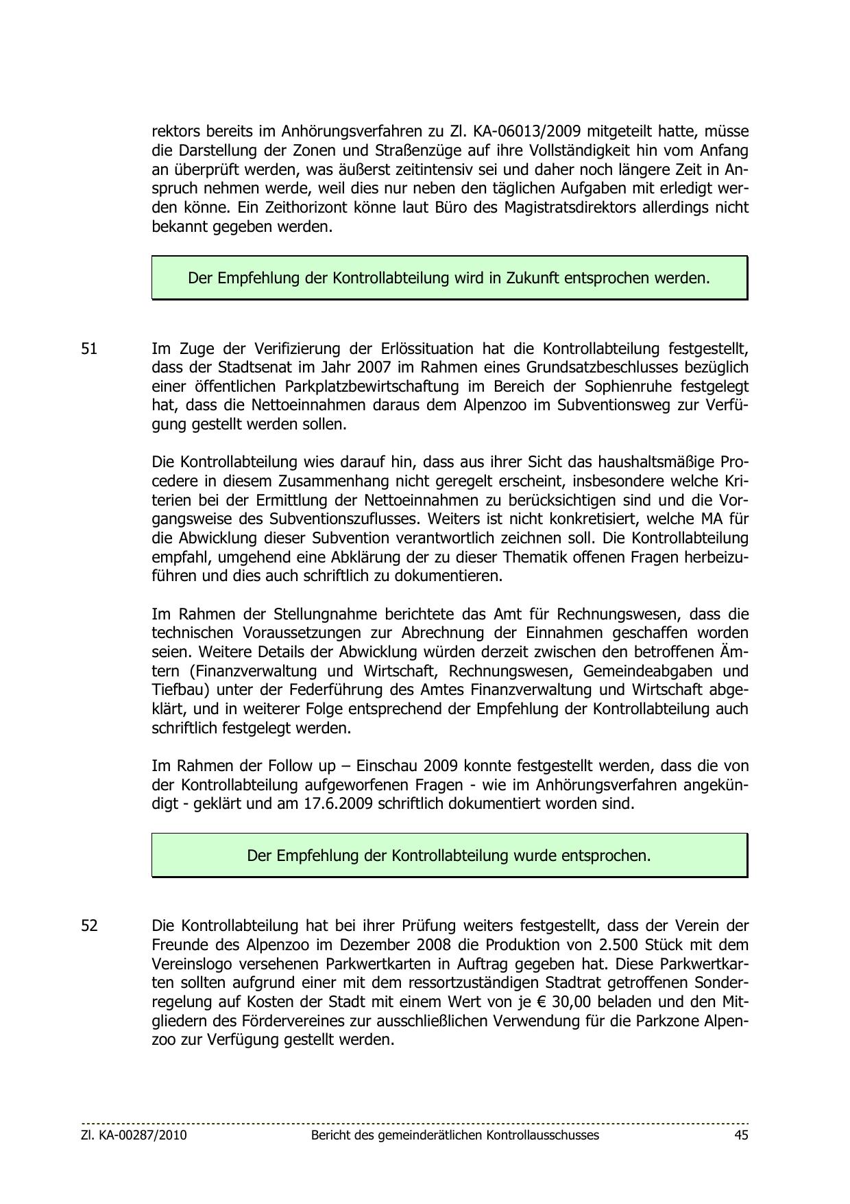 Im Rahmen der Follow up – Einschau 2009 konnte festgestellt werden, dass die von