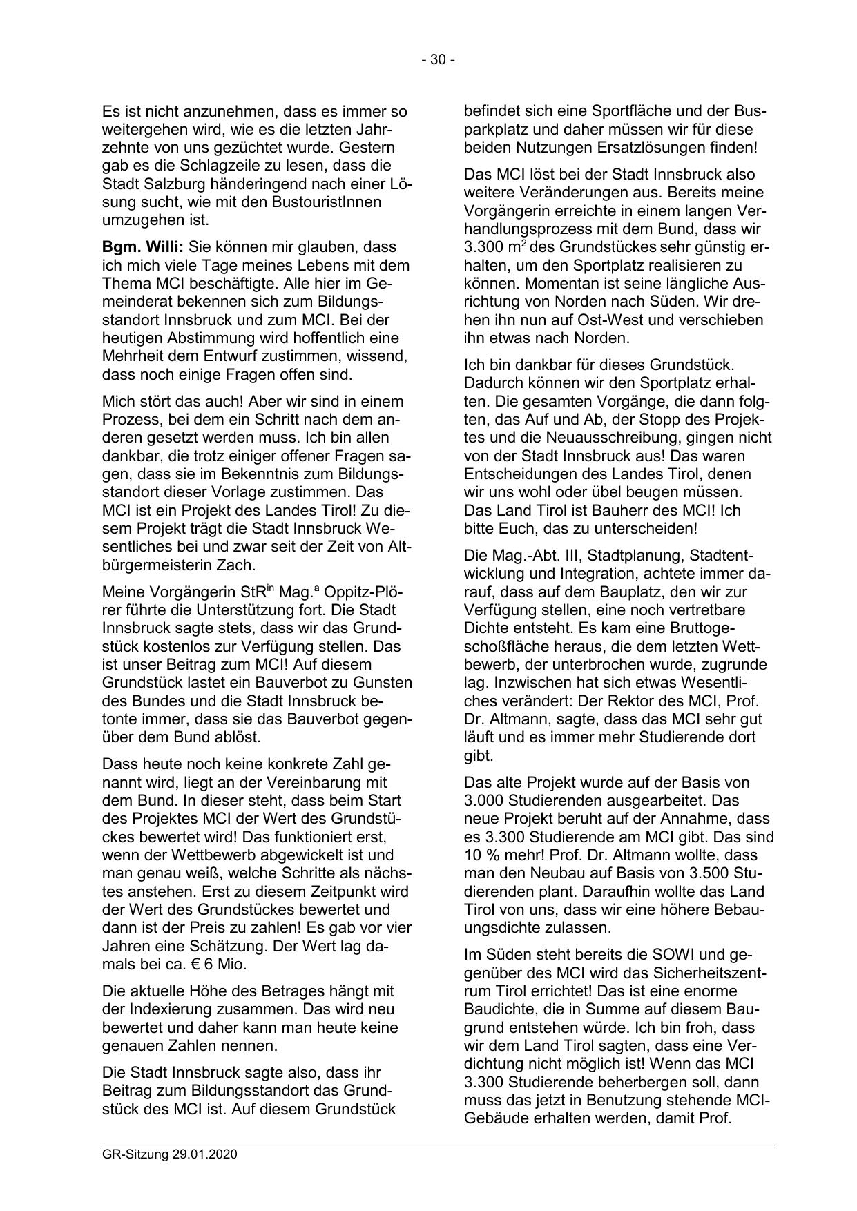 Thema MCI beschäftigte. Alle hier im Gemeinderat bekennen sich zum Bildungsstandort Innsbruck und zum MCI. Bei der