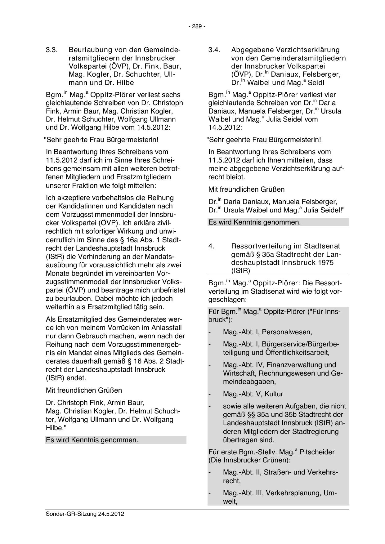 Landeshauptstadt Innsbruck (IStR) anderen Mitgliedern der Stadtregierung
