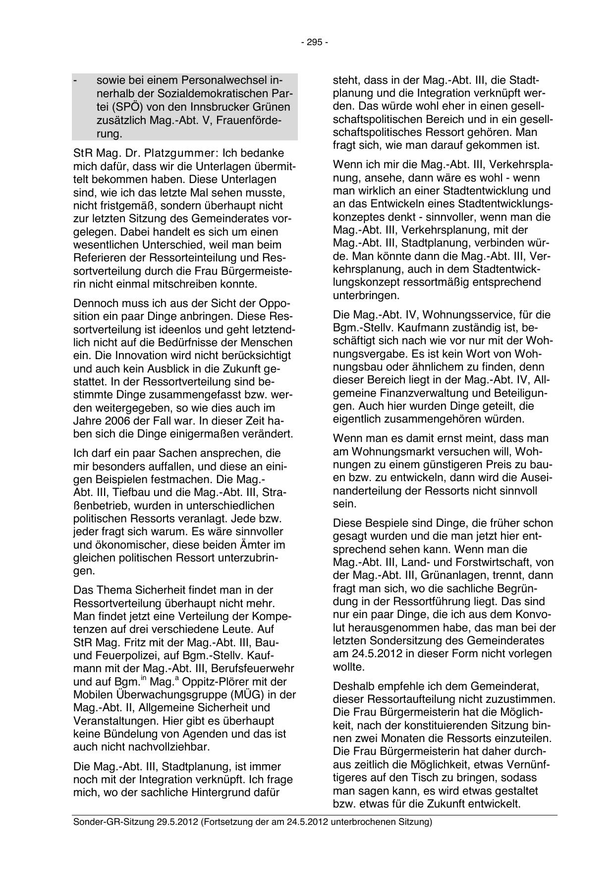 Sonder-GR-Sitzung 29.5.2012 (Fortsetzung der am 24.5.2012 unterbrochenen Sitzung)