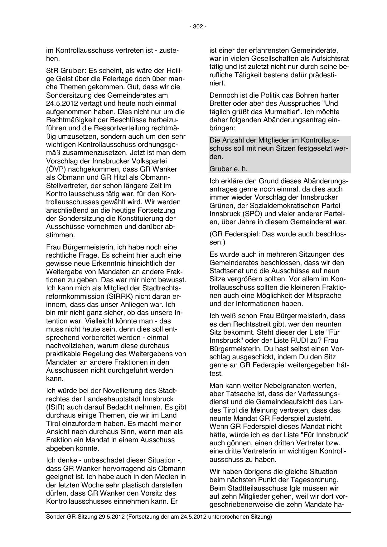 Sonder-GR-Sitzung 29.5.2012 (Fortsetzung der am 24.5.2012 unterbrochenen Sitzung)