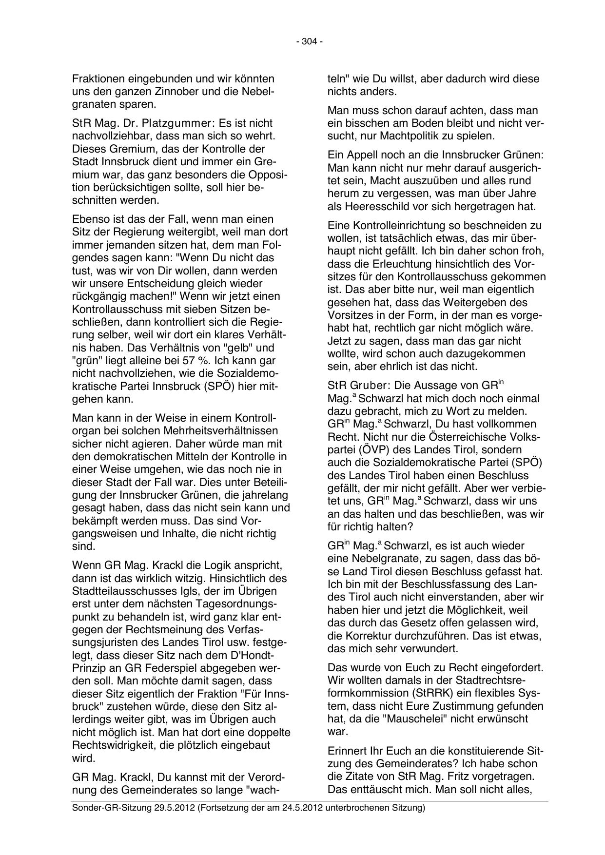 Stadt Innsbruck dient und immer ein Gremium war, das ganz besonders die Opposition berücksichtigen sollte, soll hier beschnitten werden.
