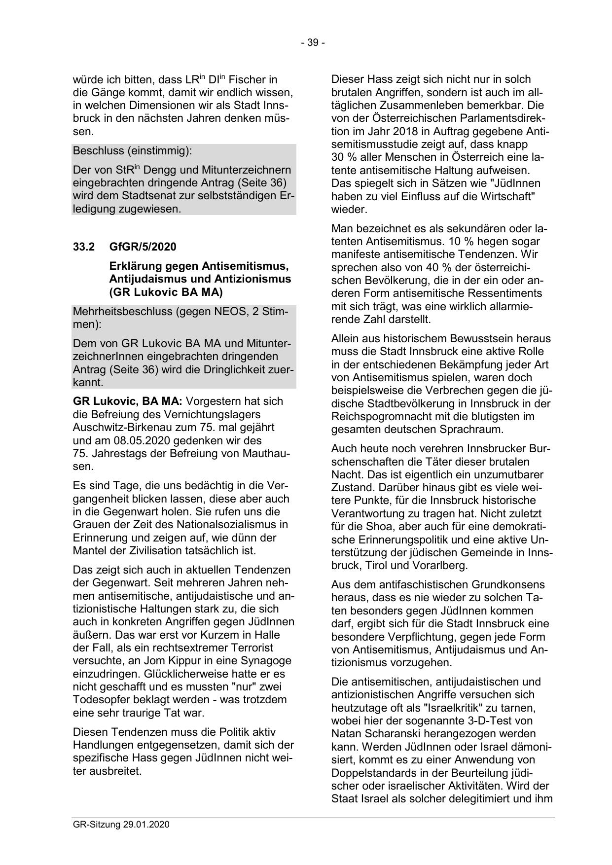 Antrag (Seite 36) wird die Dringlichkeit zuerkannt.