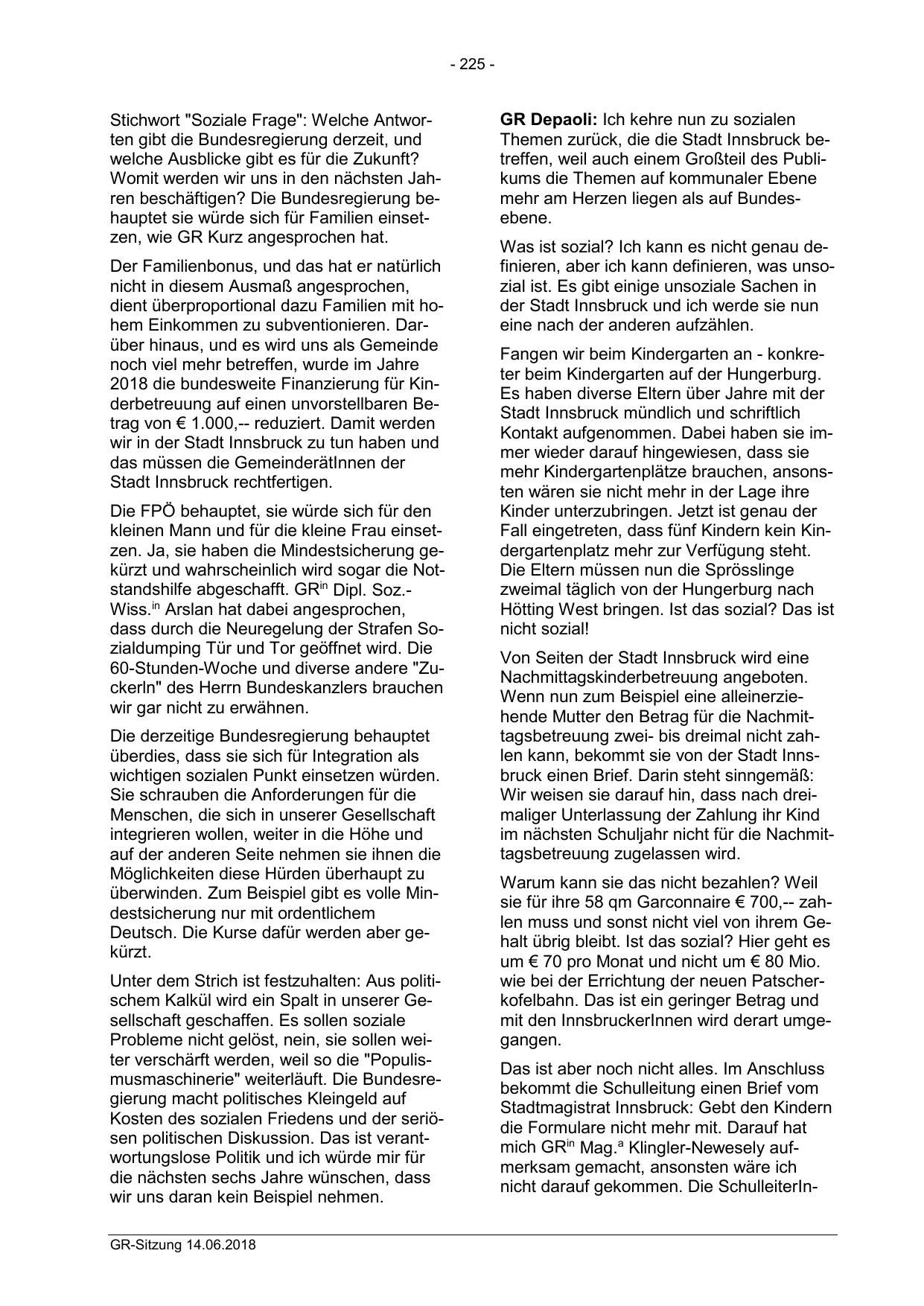 Themen zurück, die die Stadt Innsbruck betreffen, weil auch einem Großteil des Publikums die Themen auf kommunaler Ebene