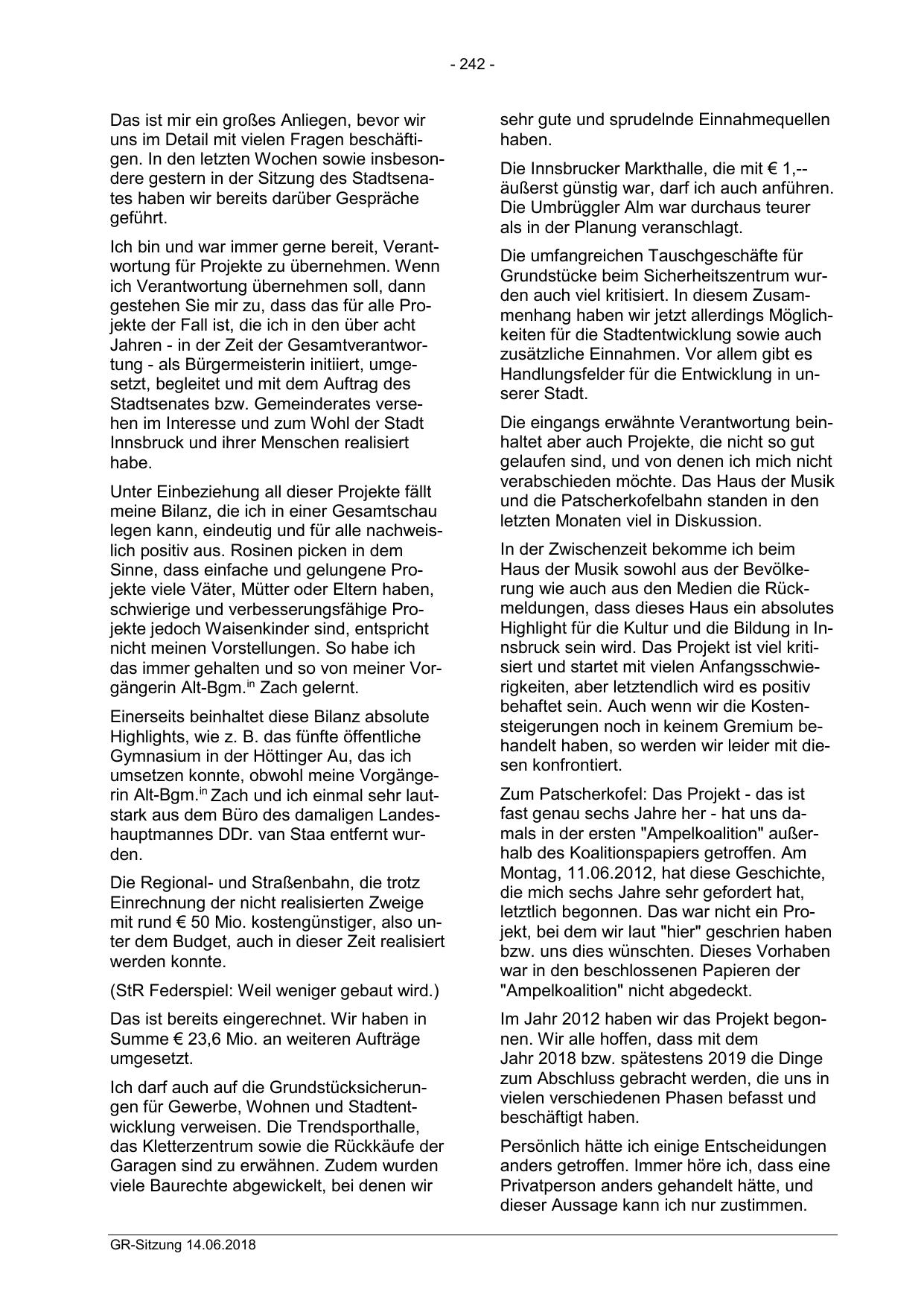 umsetzen konnte, obwohl meine Vorgängerin Alt-Bgm.in Zach und ich einmal sehr lautstark aus dem Büro des damaligen Landeshauptmannes DDr. van Staa entfernt wurden.
