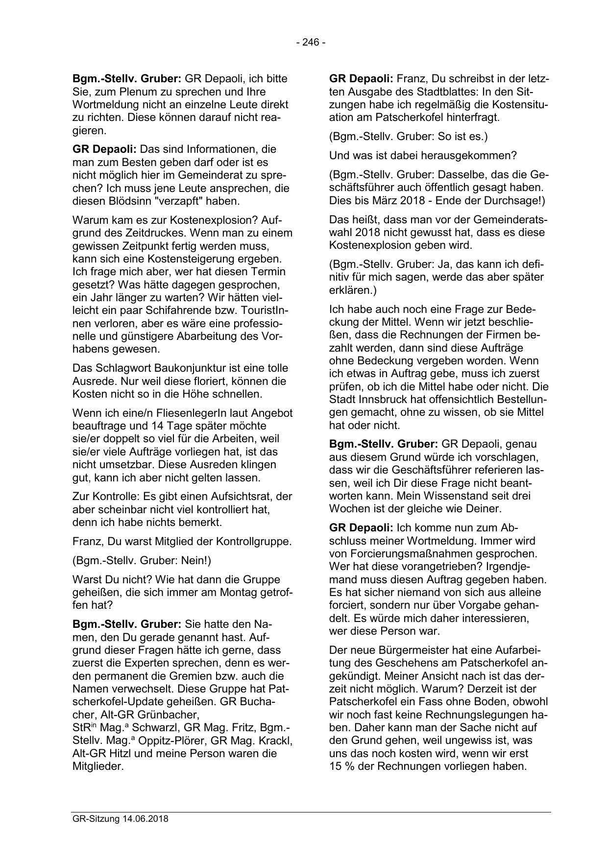 Bgm.-Stellv. Gruber: GR Depaoli, genau