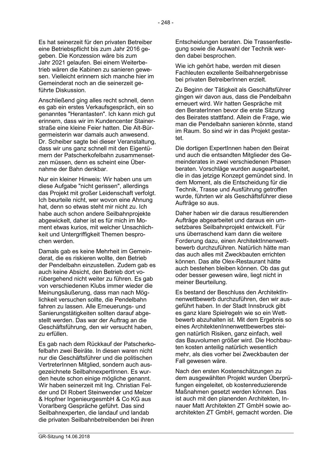 VertreterInnen Mitglied, sondern auch ausgezeichnete SeilbahnexpertInnen. Es wurden heute schon einige mögliche genannt.