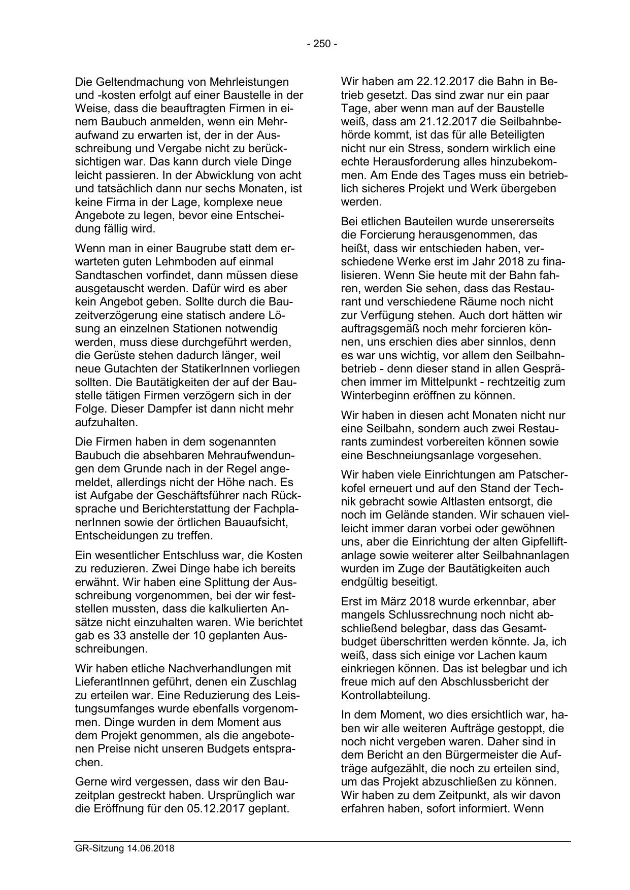 es war uns wichtig, vor allem den Seilbahnbetrieb - denn dieser stand in allen Gesprächen immer im Mittelpunkt - rechtzeitig zum