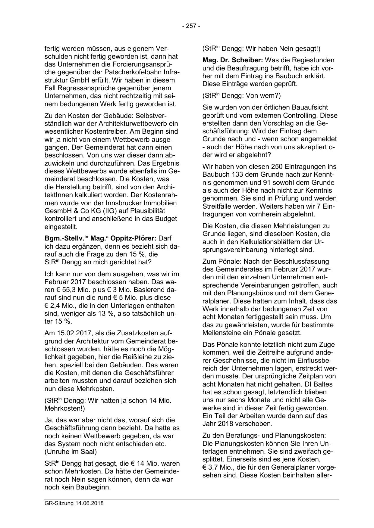 das Unternehmen die Forcierungsansprüche gegenüber der Patscherkofelbahn Infrastruktur GmbH erfüllt. Wir haben in diesem