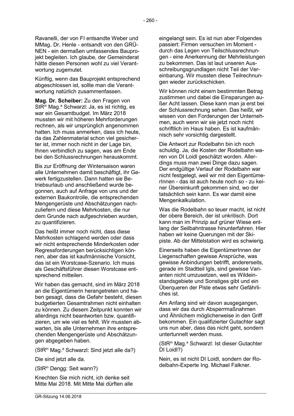schuldig. Ja, die Kosten der Rodelbahn waren von DI Loidl geschätzt worden. Allerdings muss man zwei Dinge dazu sagen.