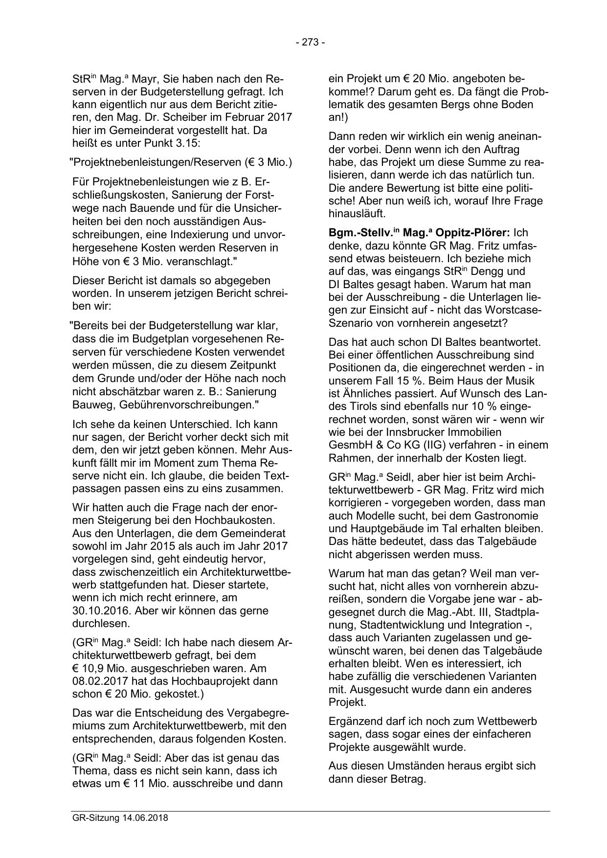 GRin Mag.a Seidl, aber hier ist beim Architekturwettbewerb - GR Mag. Fritz wird mich