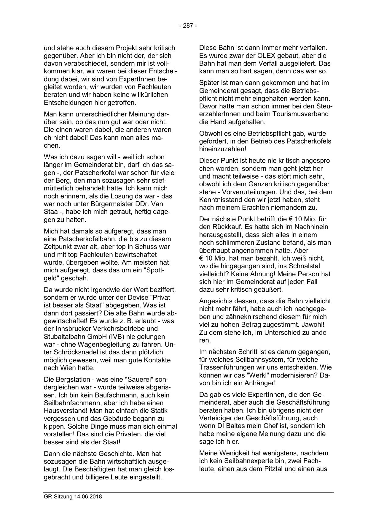 länger im Gemeinderat bin, darf ich das sagen -, der Patscherkofel war schon für viele