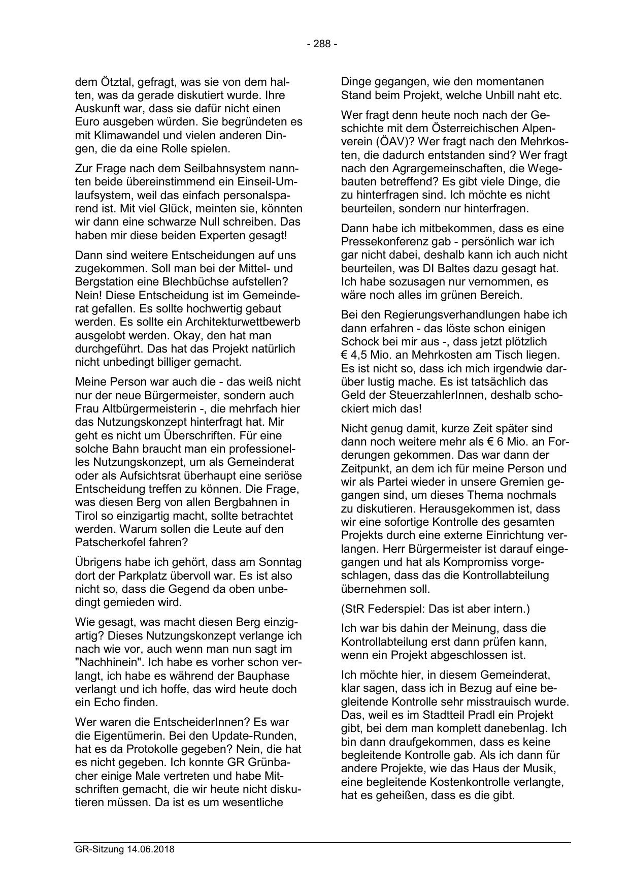 es nicht gegeben. Ich konnte GR Grünbacher einige Male vertreten und habe Mitschriften gemacht, die wir heute nicht diskutieren müssen. Da ist es um wesentliche